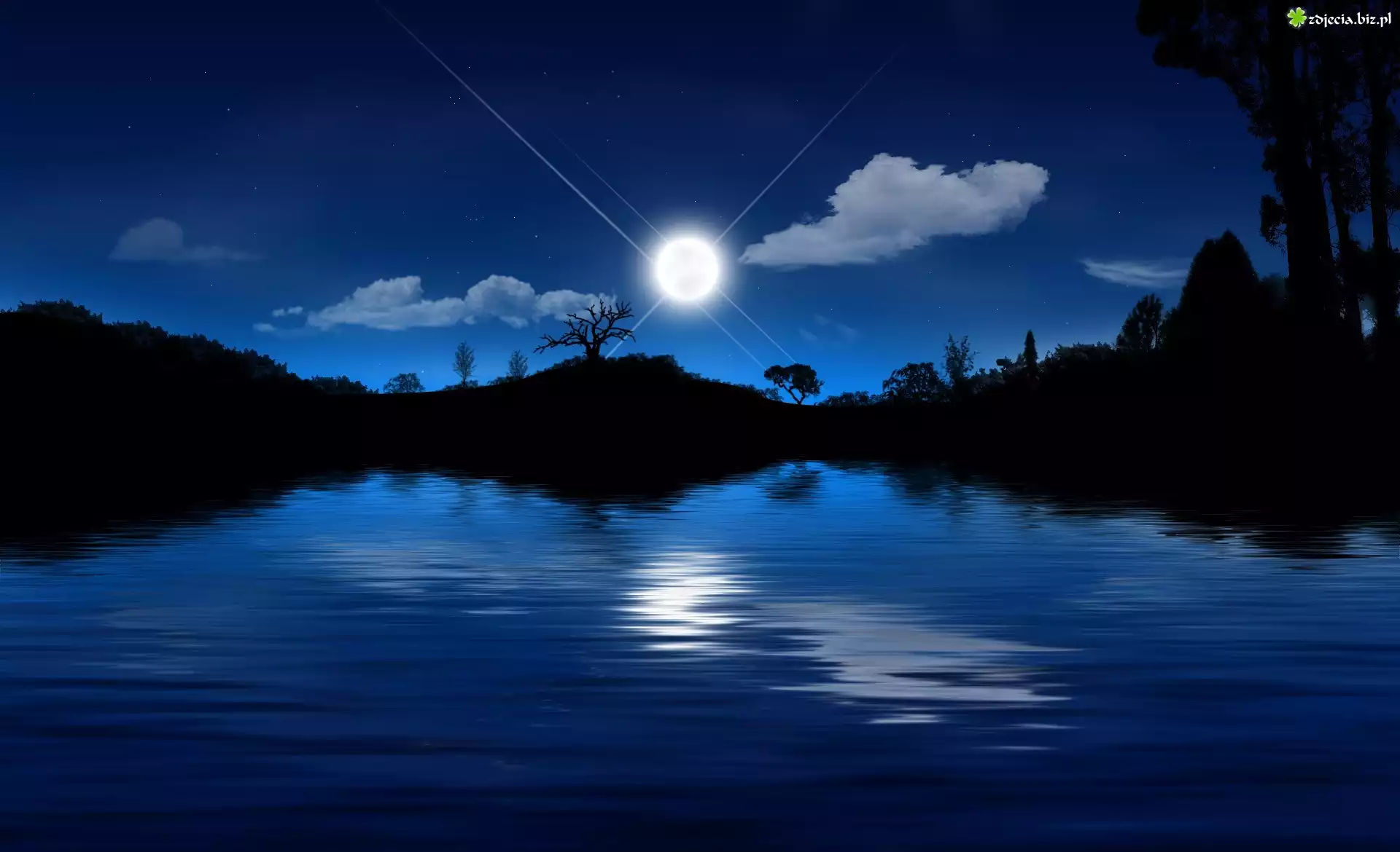 Zdjęcie Noc, Jezioro, Księżyc, Gwiazdy, Odbicie