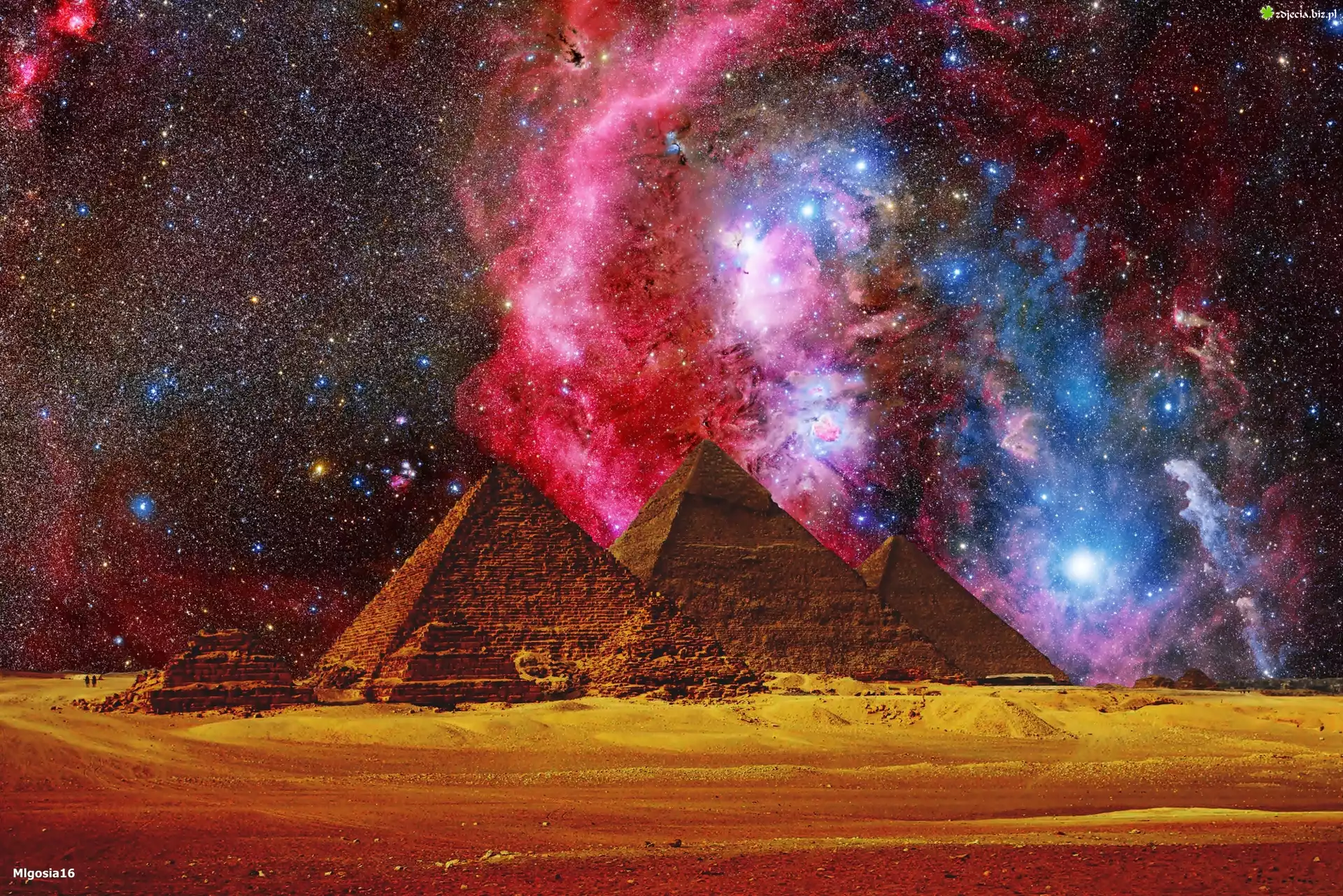 Zdjęcie Noc, Piramidy, Galaktyka, Kosmos, Gwiazdy