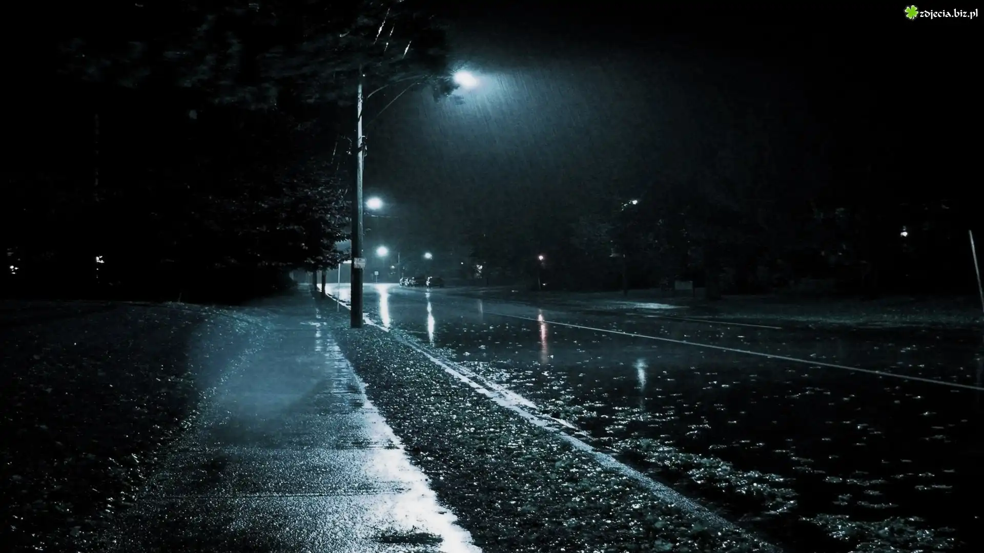 Zdjęcie Noc, Ulica, Latarnia, Deszcz