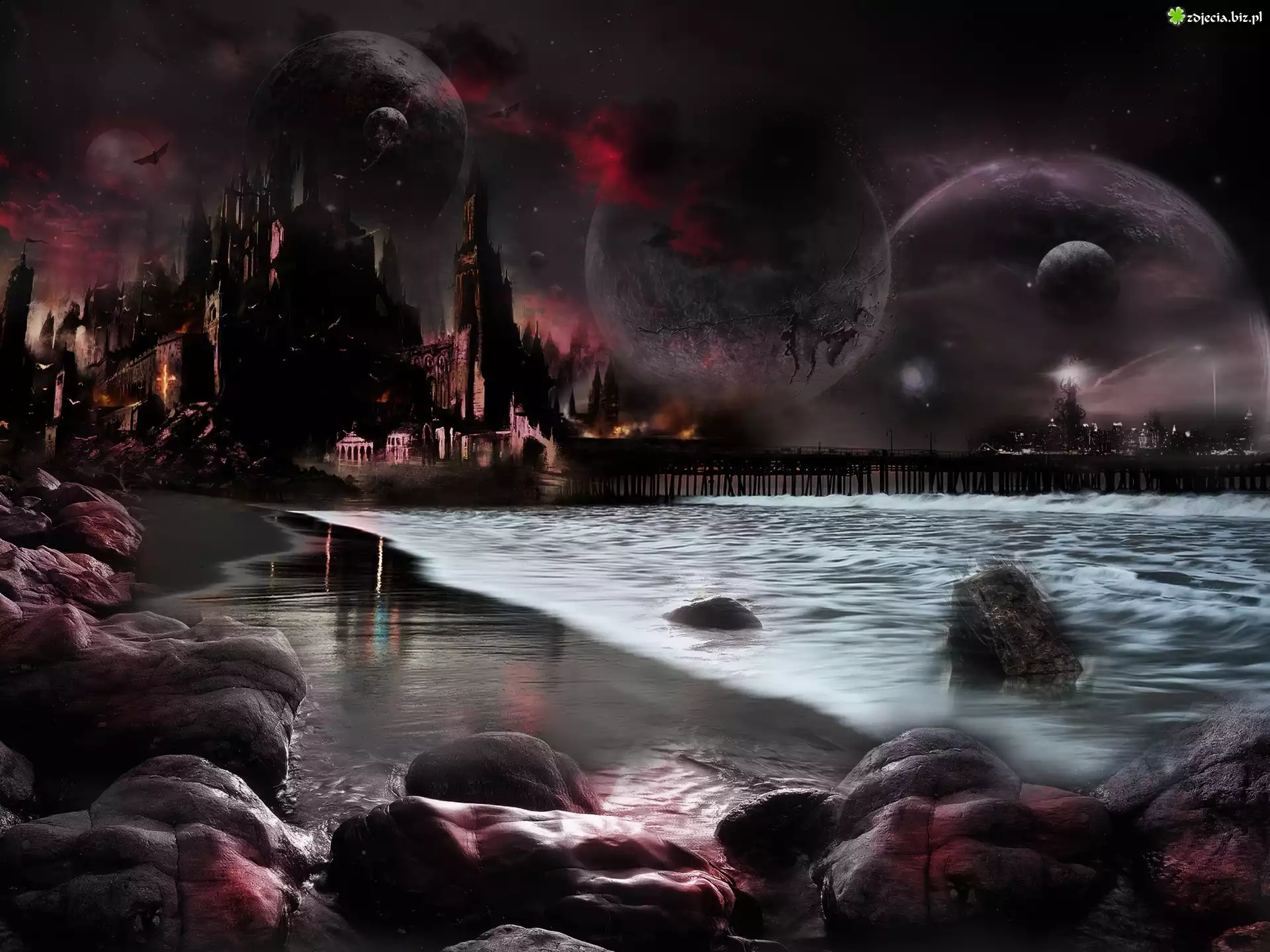 Zdjęcie Noc, Zamek, Morze, Ptak