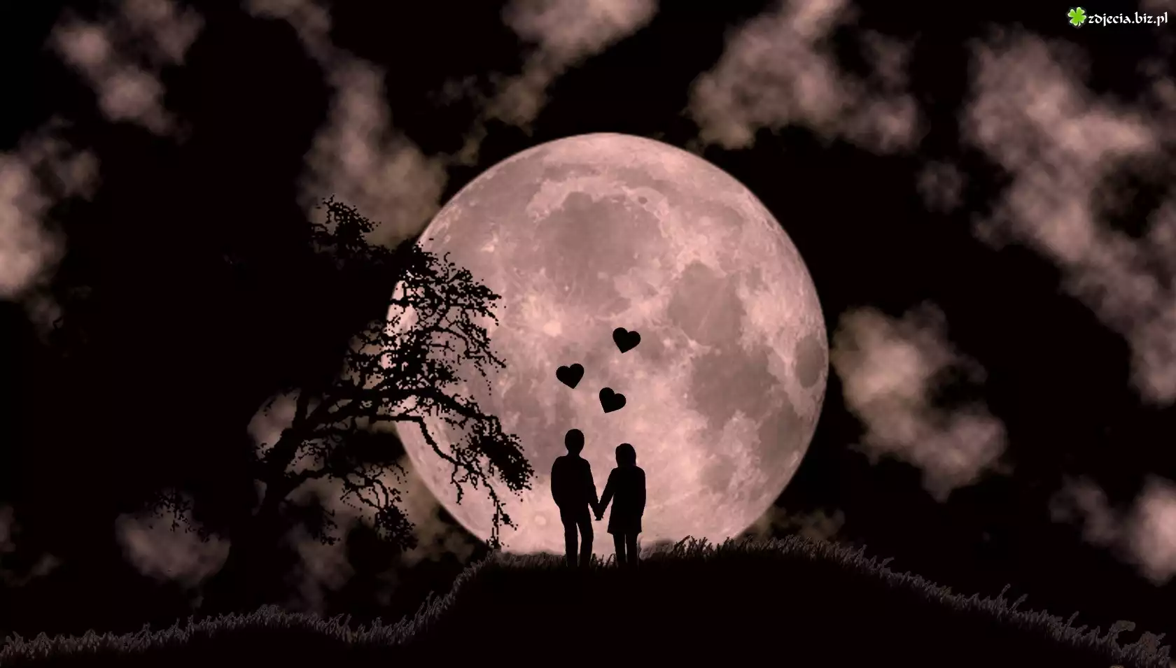 Zdjęcie Noc, Księżyc, Para, Zakochani