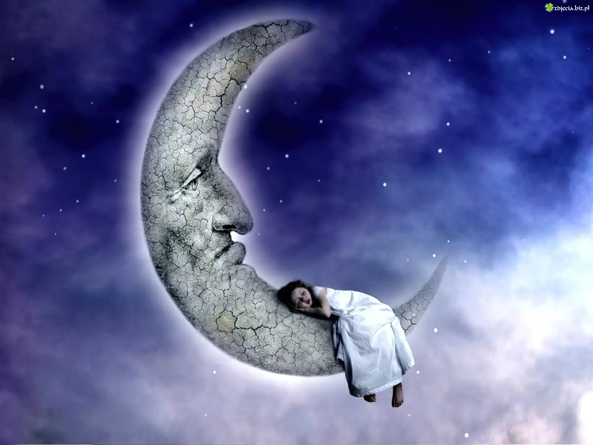Zdjęcie Noc, Księżyc, Śpiące, Dziecko