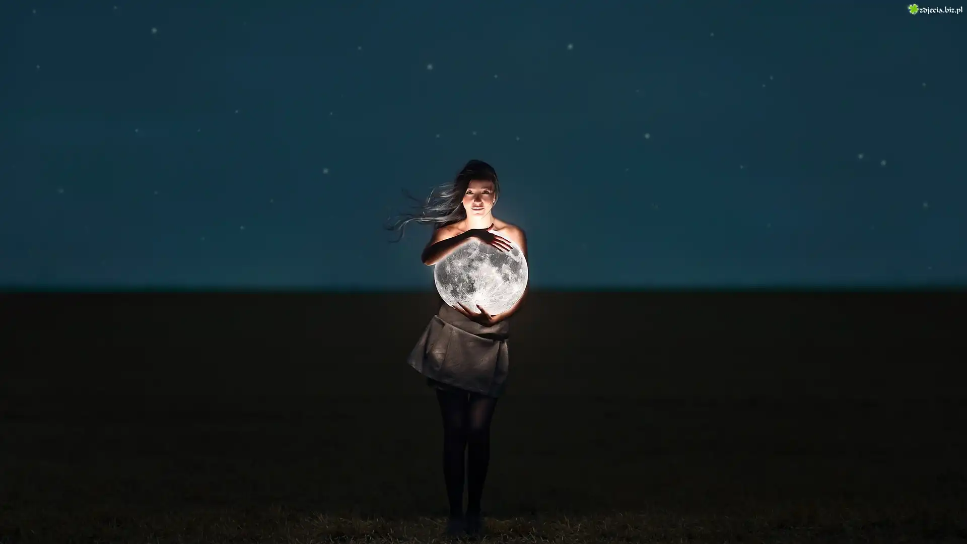 Zdjęcie Noc, Dziewczyna, Oświetlona, Kula, Ziemska, Ziemia