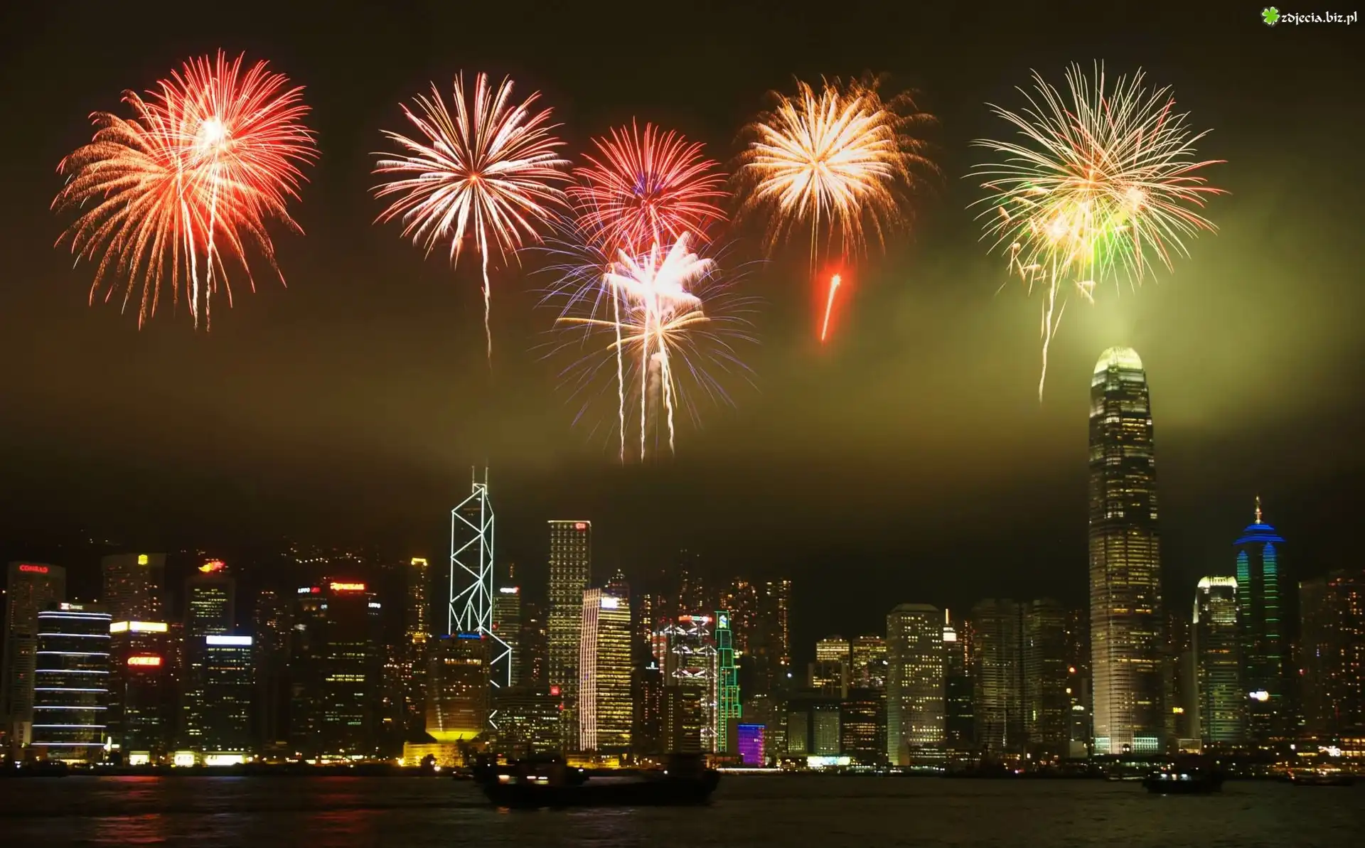 Zdjęcie Miasto, Nocą, Fajerwerki