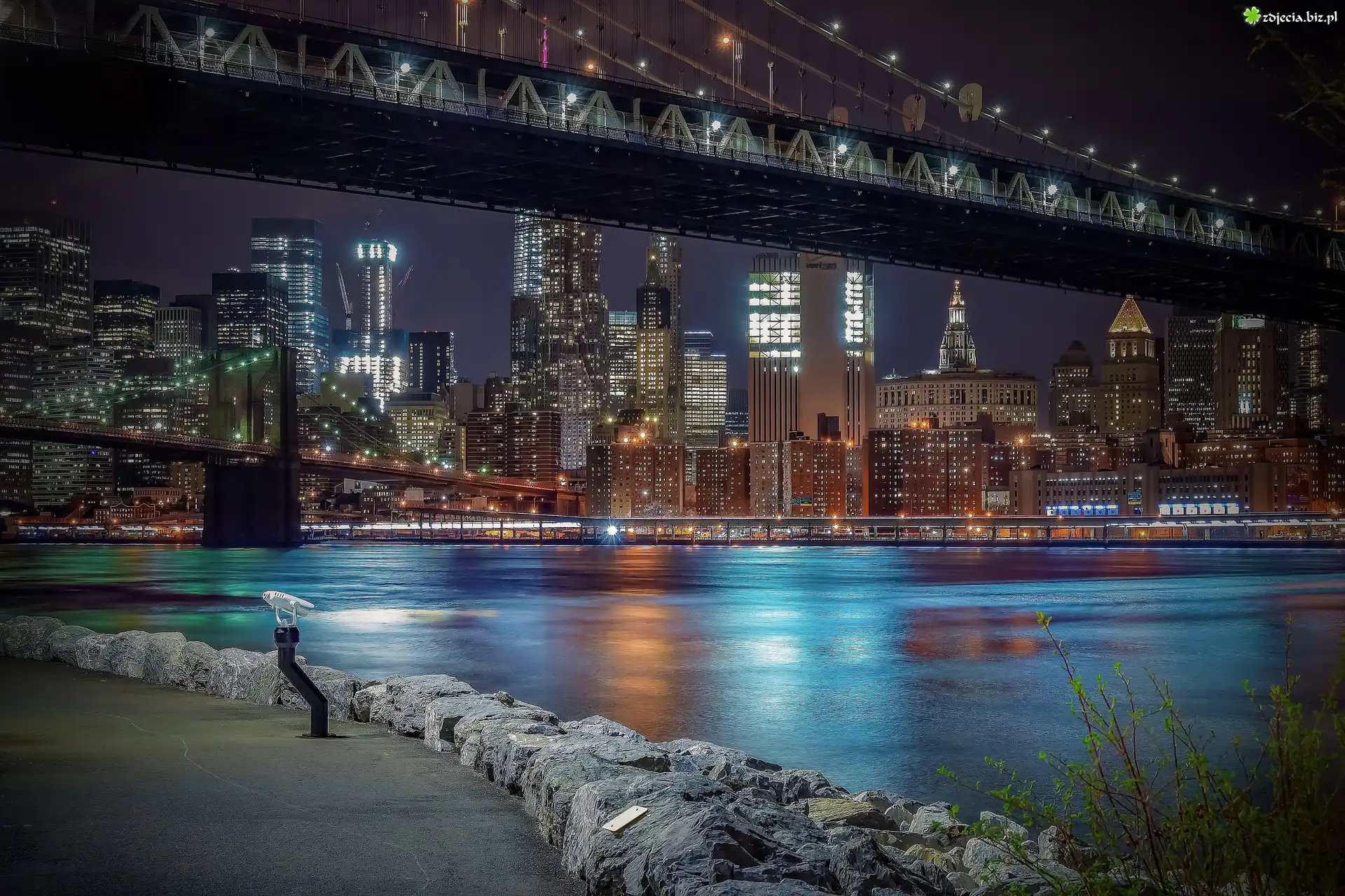 Zdjęcie Stany Zjednoczone, Nowy Jork, Rzeka East River, Most, Miasto nocą