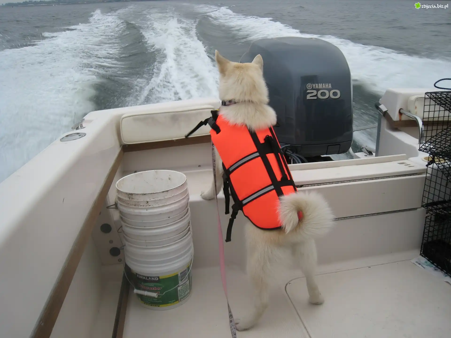 Zdjęcie Norsk Buhund, fale, motorówka