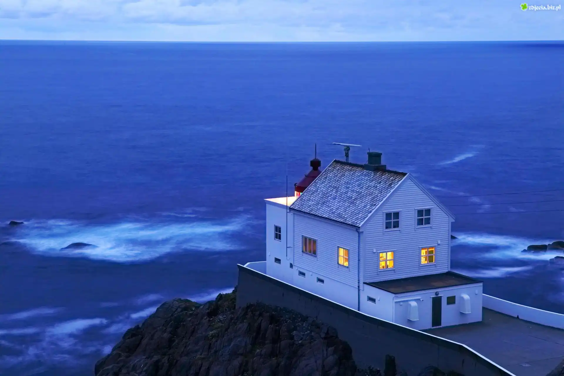 Zdjęcie, Norwegia, Latarnia Morska, Morze, Fale, Dom