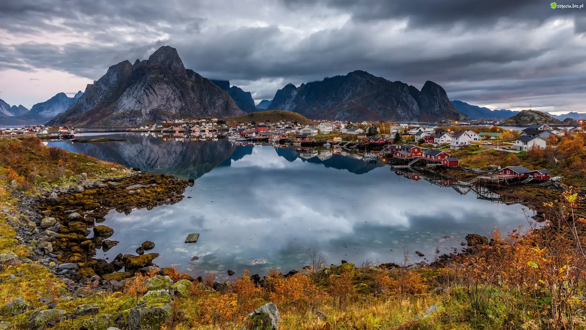 Zdjęcie Wyspa Moskenesoya, Wioska Reine, Morze Norweskie, Góry, Lofoty, Norwegia