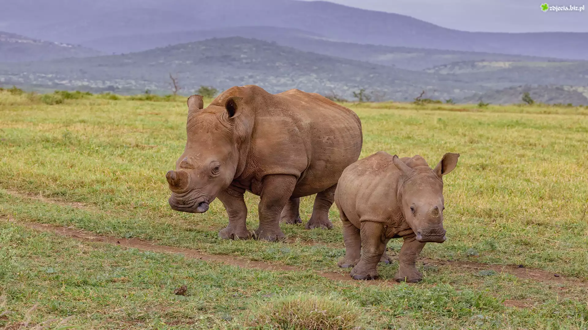 Zdjęcie Dwa, Nosorożce, Mały, Duży, Trawa
