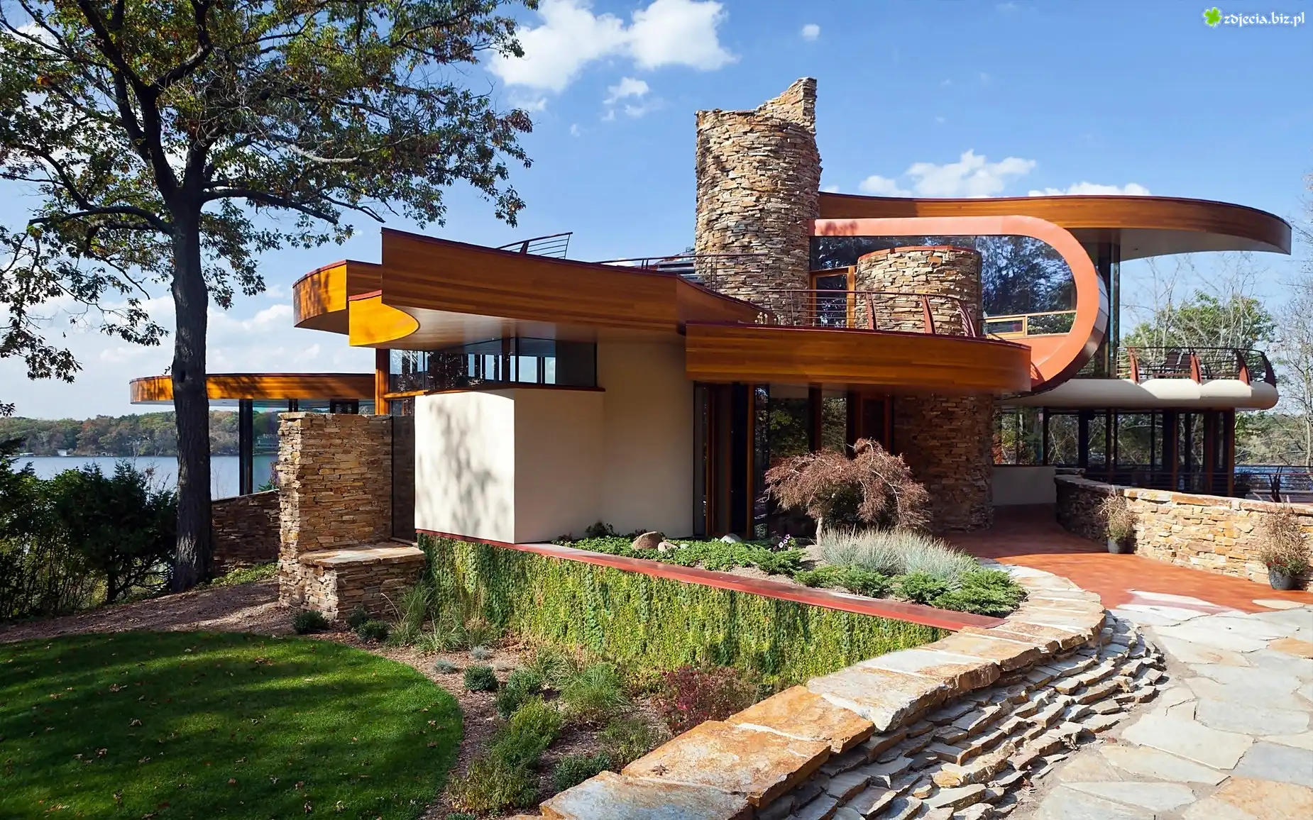 Zdjęcie Nowoczesna, Willa, Drzewa, Jezioro
