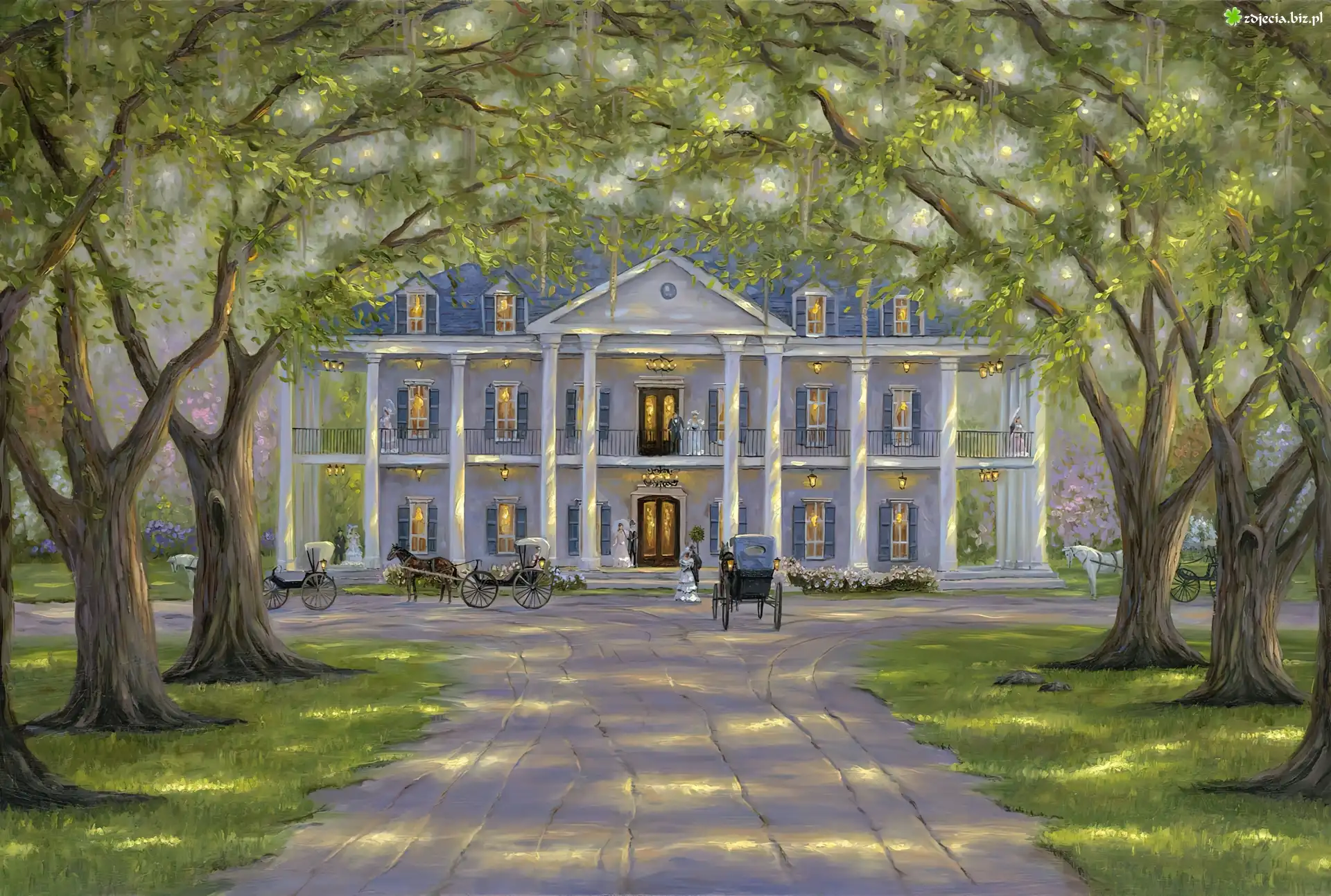 Zdjęcie Obraz, Robert Finale, Dworek, Drzewa, Powozy