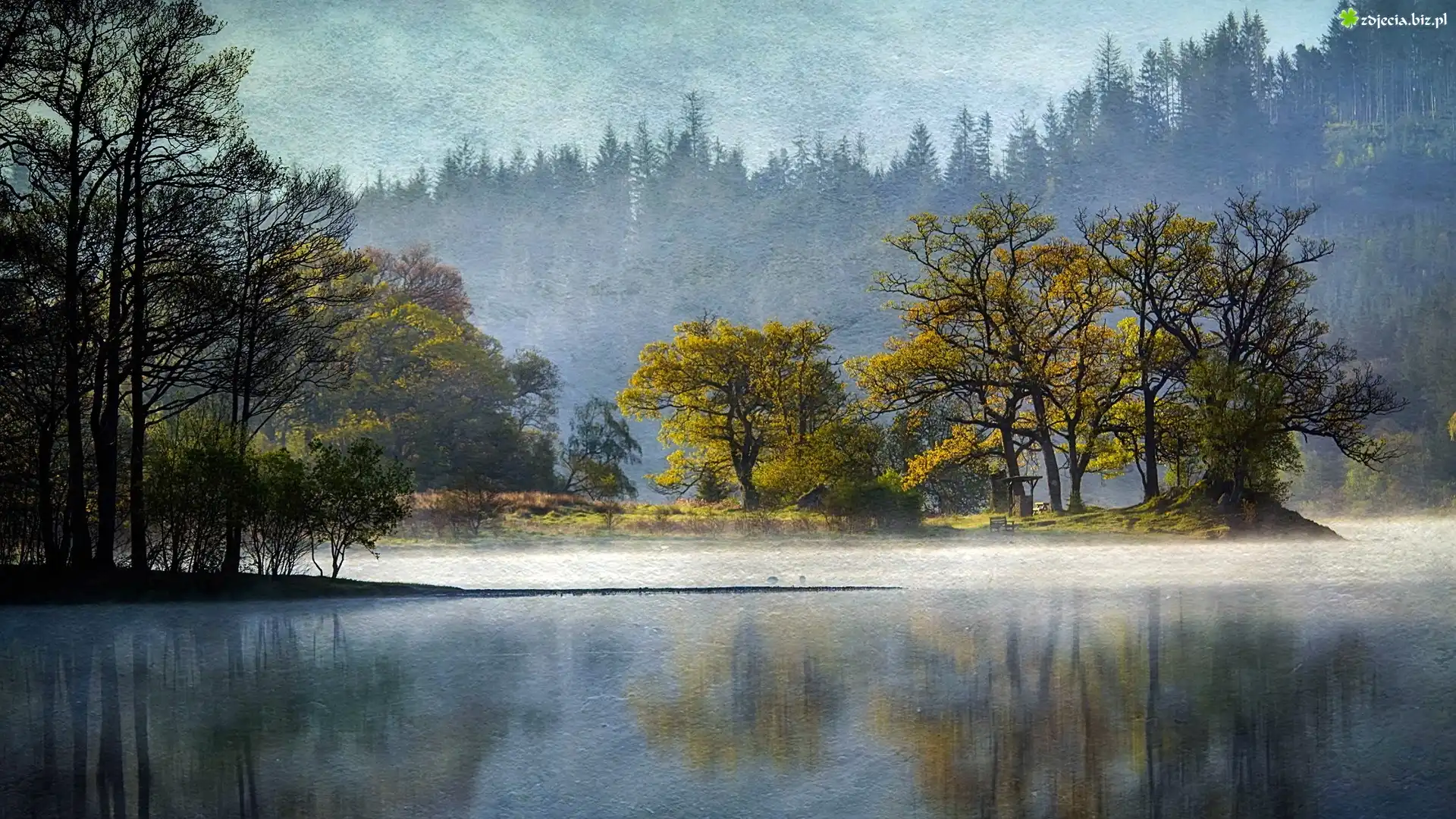 Zdjęcie Obraz, Las, Jezioro, Drzewa