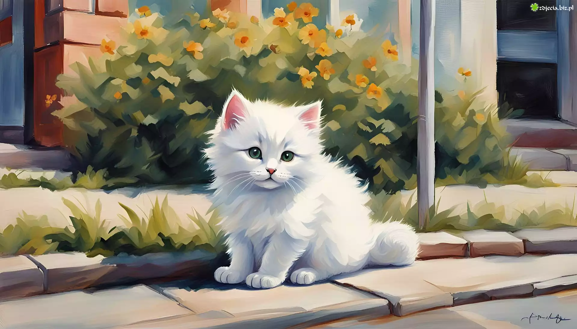 Zdjęcie Kotek, Kwiaty, Dom, Obraz