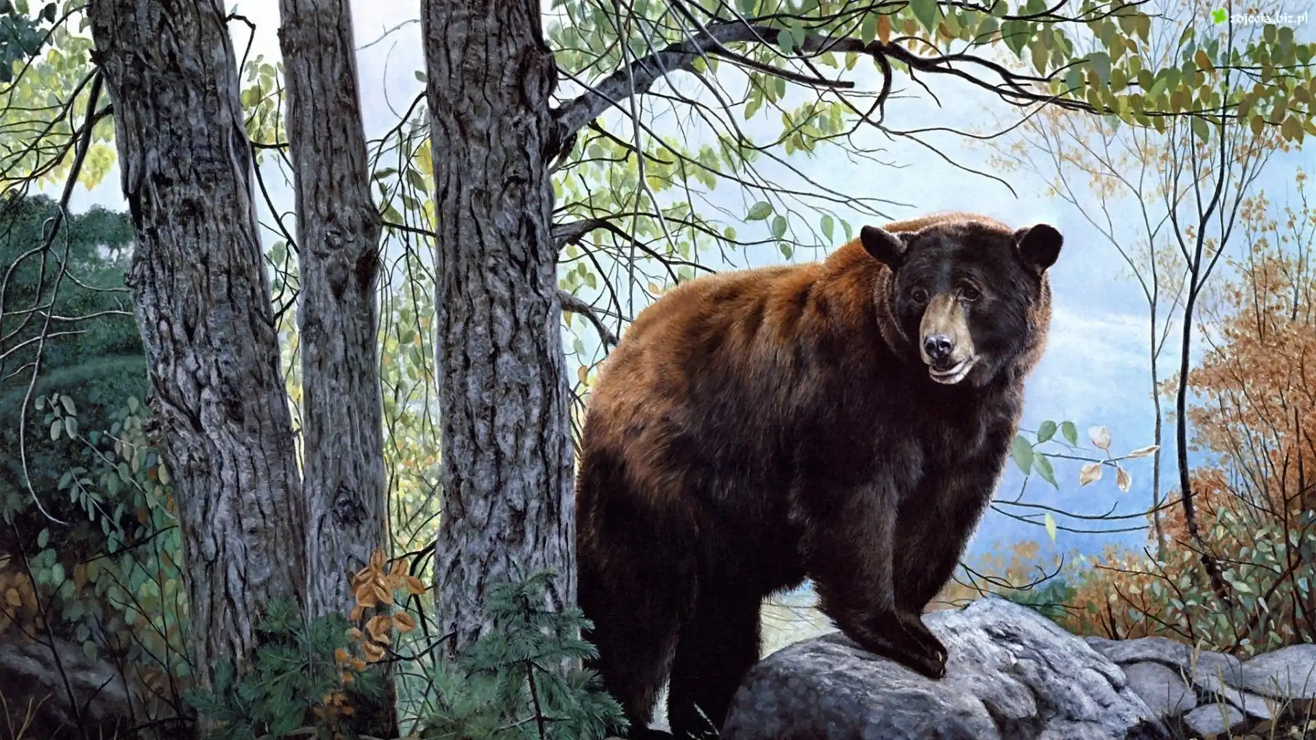 Zdjęcie Obraz, Niedźwiedź, Skały, Las