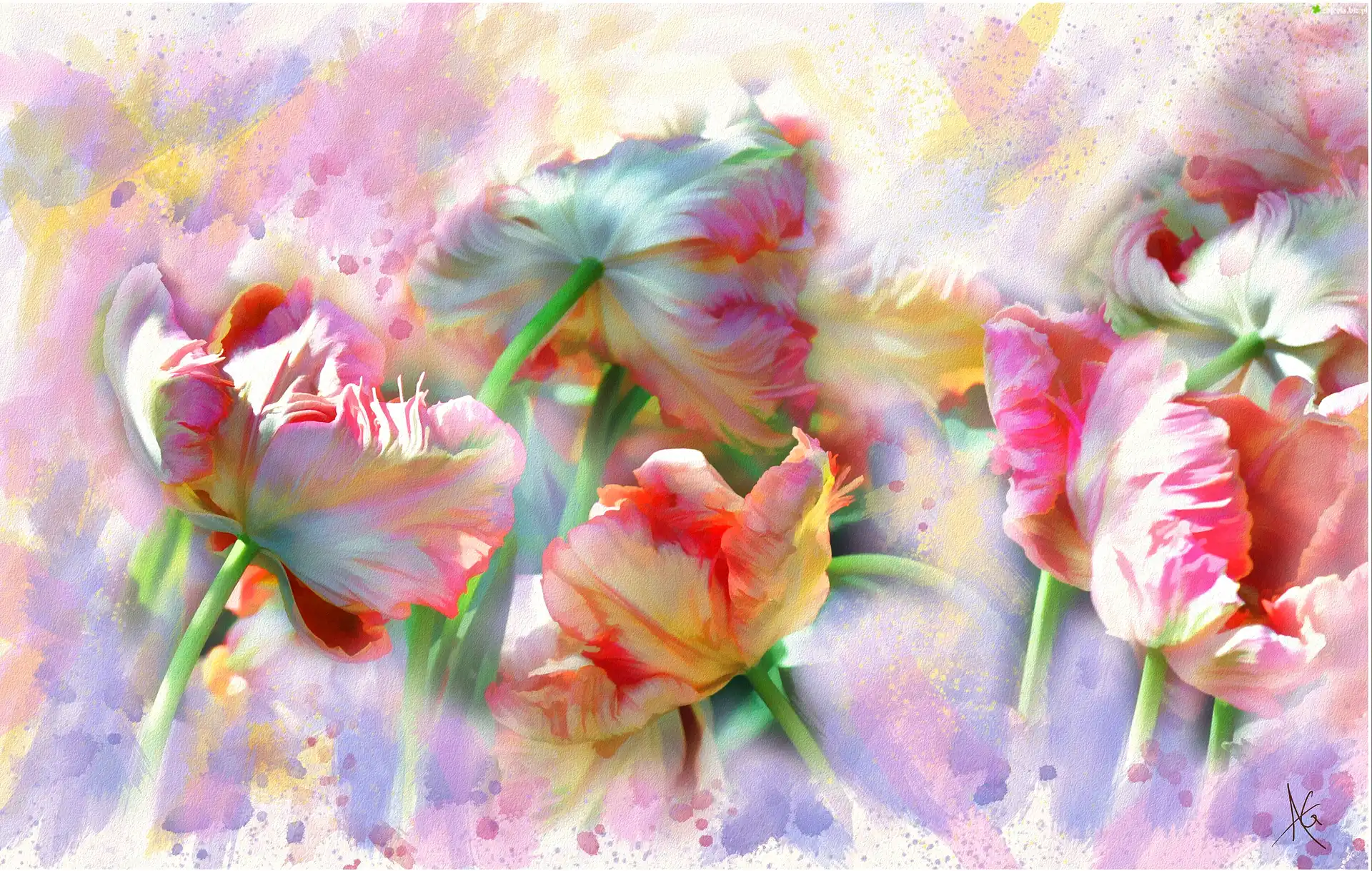 Zdjęcie Obraz, Akwarela, Tulipany, Kwiaty, Alberto Guillen