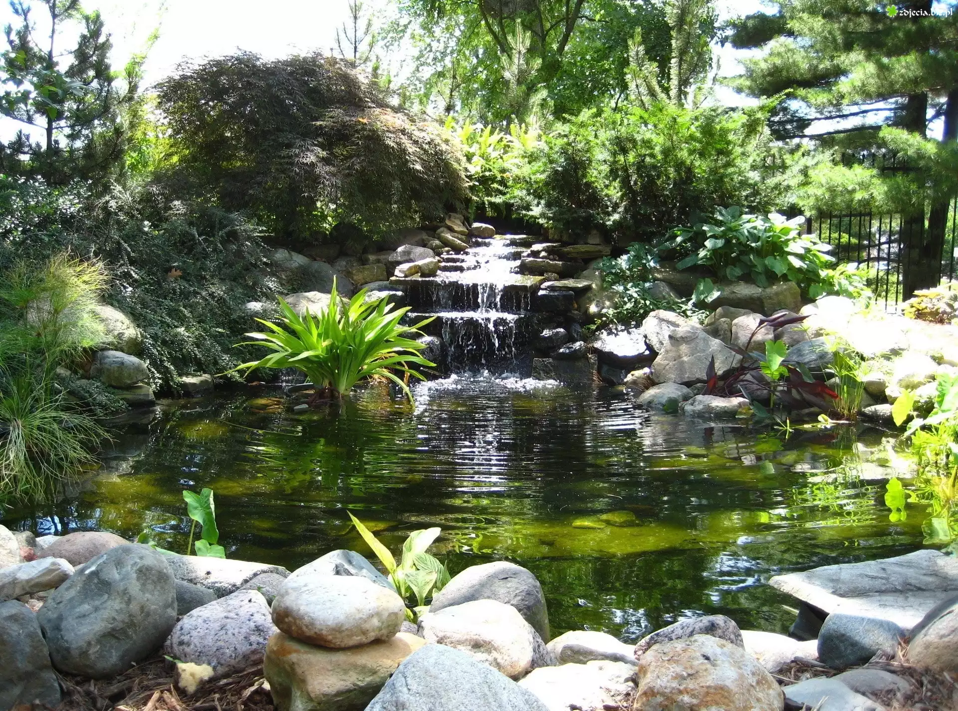 Zdjęcie Oczko, Wodne, Kamienie, Drzewa, Rośliny