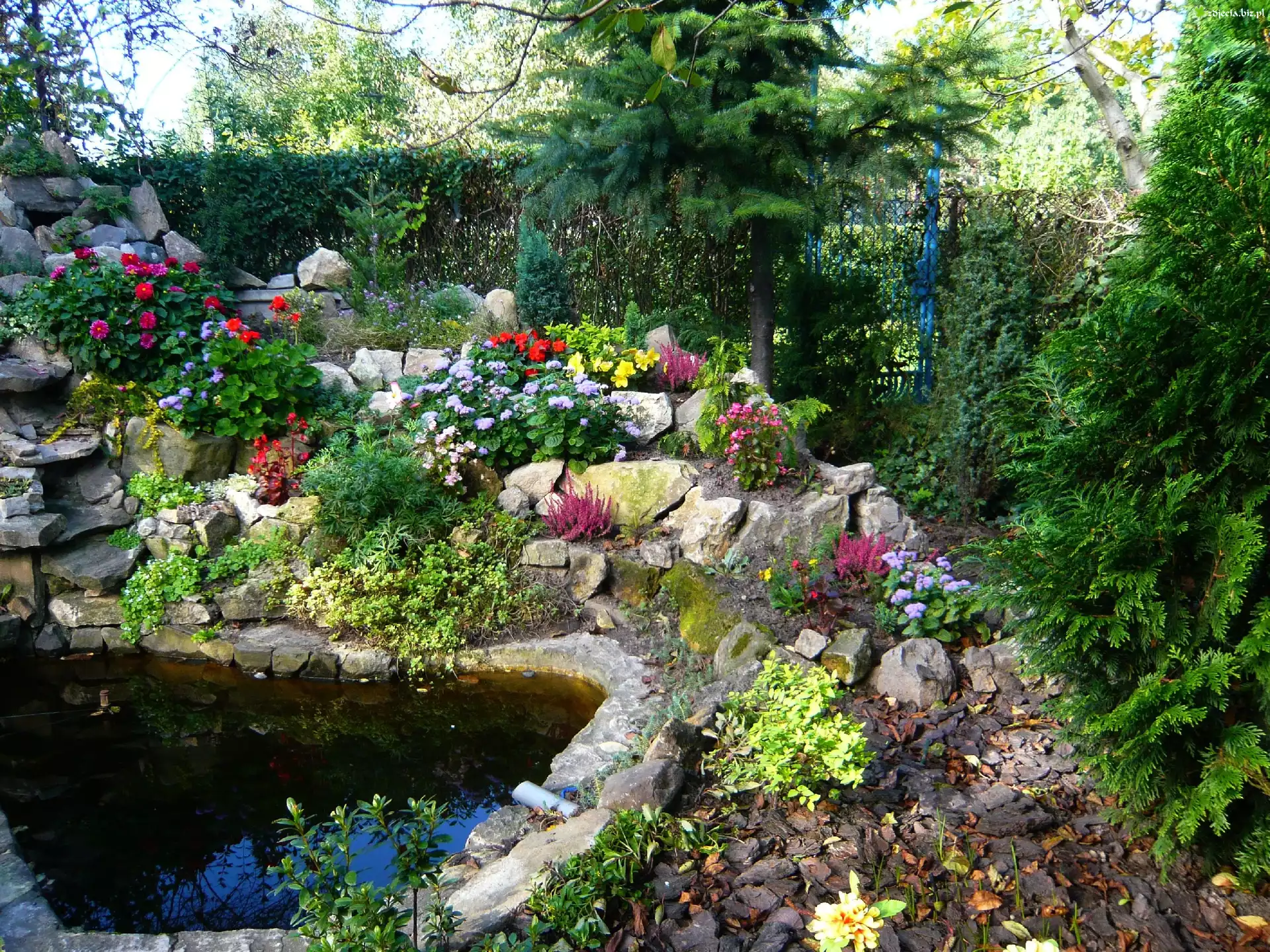 Zdjęcie Oczko, Wodne, Kamienie, Kwiaty