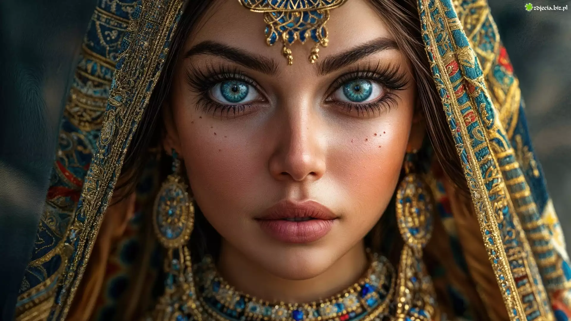 Zdjęcie Portret, Kobieta, Niebieskie, Oczy, Chusta, Biżuteria