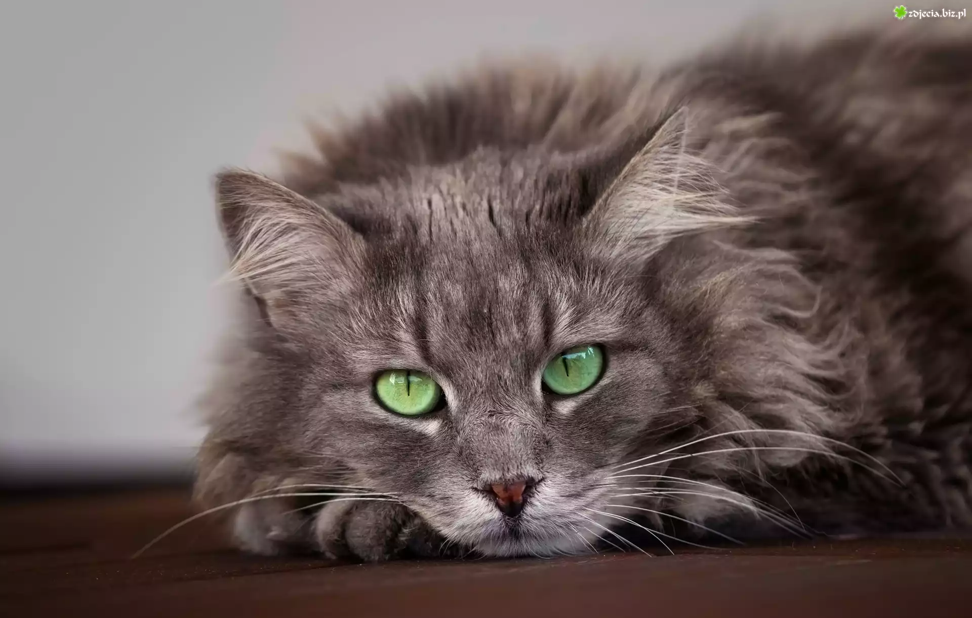 Zdjęcie Kot, Szary, Zielone, Oczy
