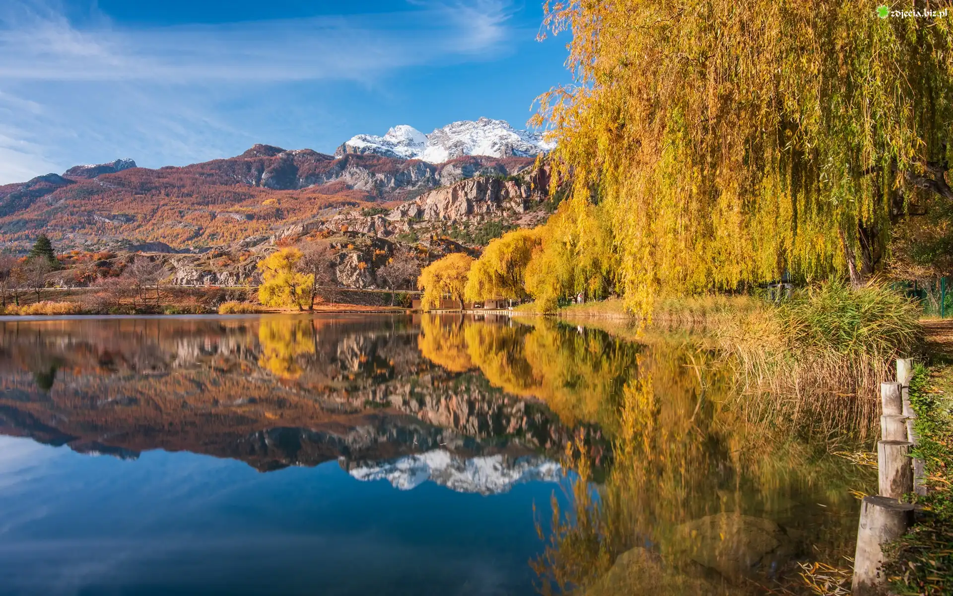 Zdjęcie Francja, La Roche de Rame, Góry, Jezioro Lac de la Roche de Rame, Las, Drzewa, Jesień, Odbicie |