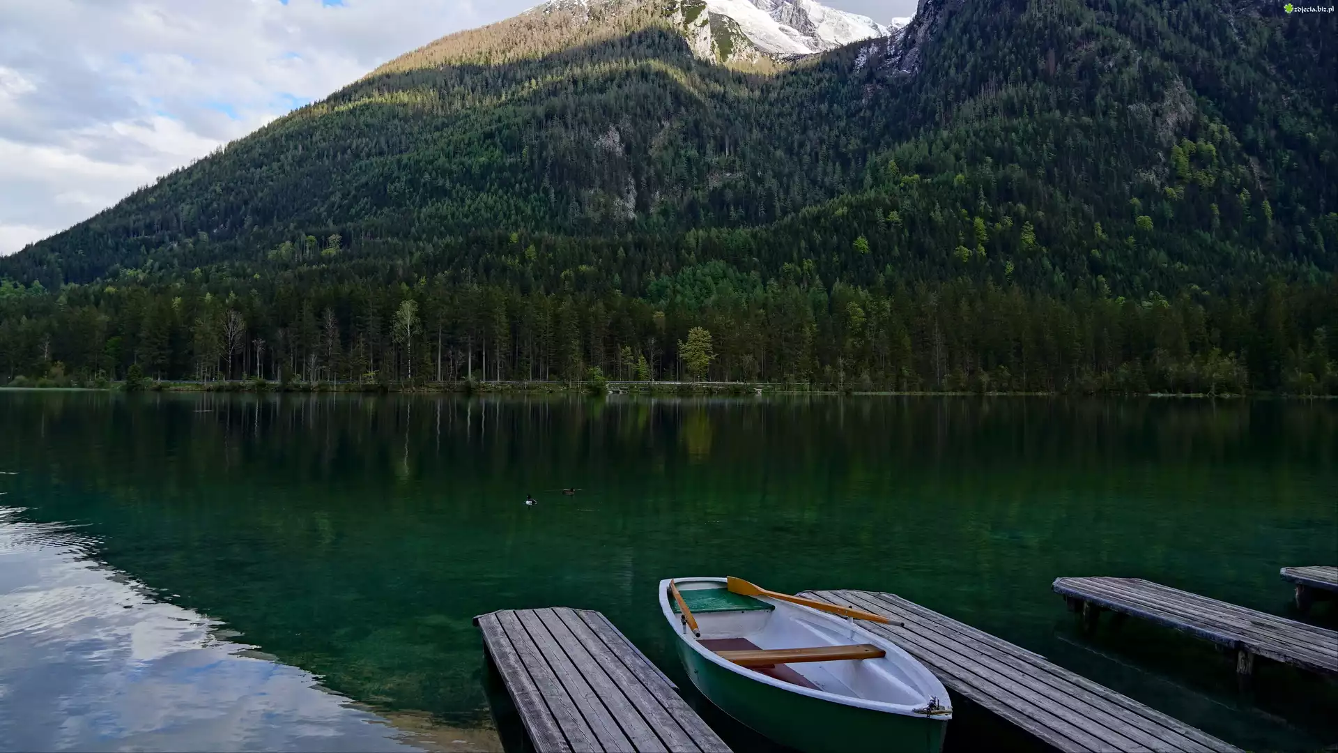 Zdjęcie, Łódka, Przystań, Stanowiska, Pomosty, Jezioro, Góry