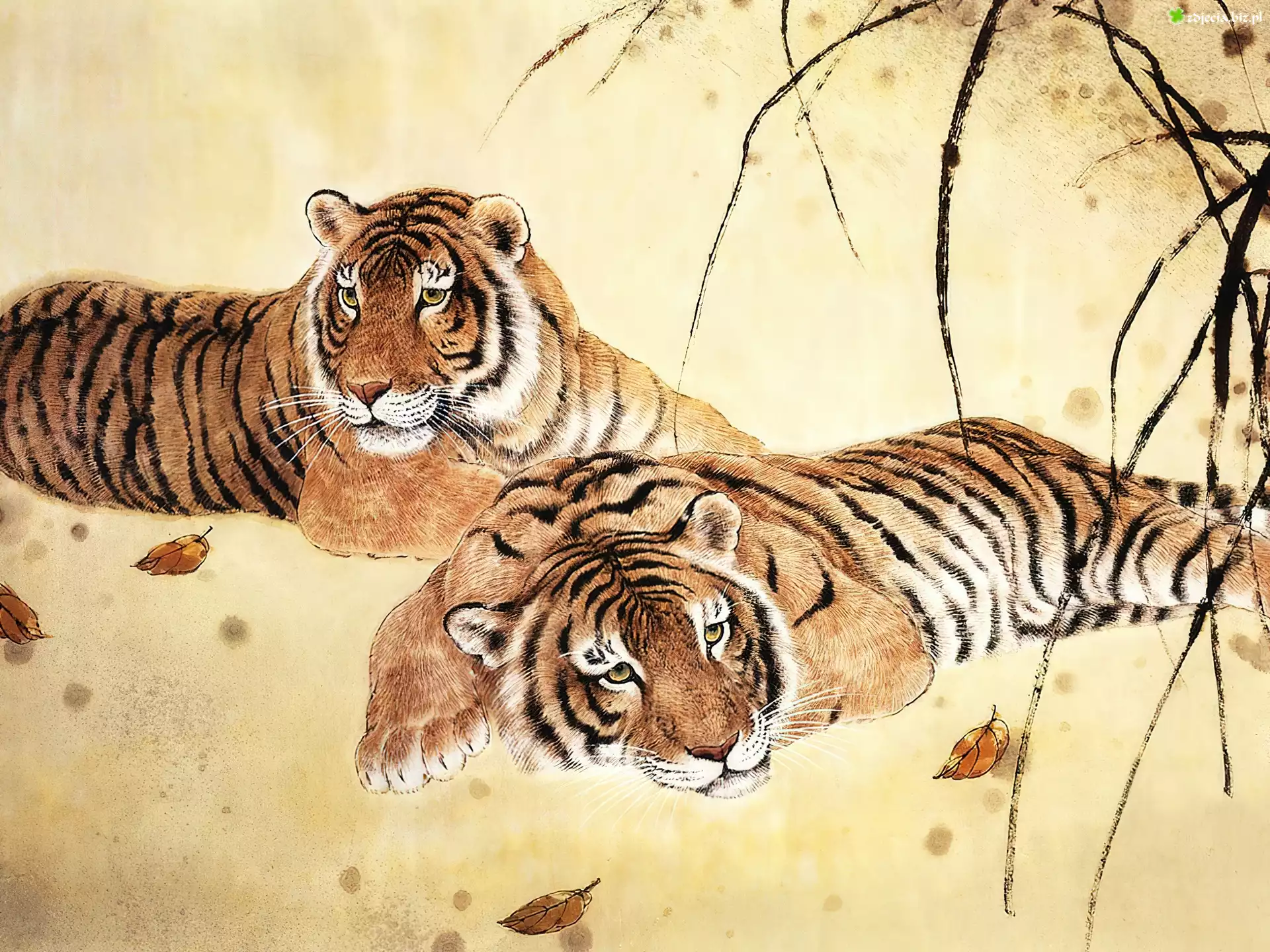 Zdjęcie Dwa, Odpoczywające, Tygrysy