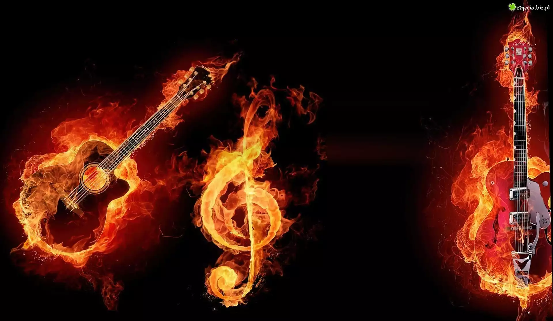 Zdjęcie Ogień, Gitary, Klucz Wiolinowy