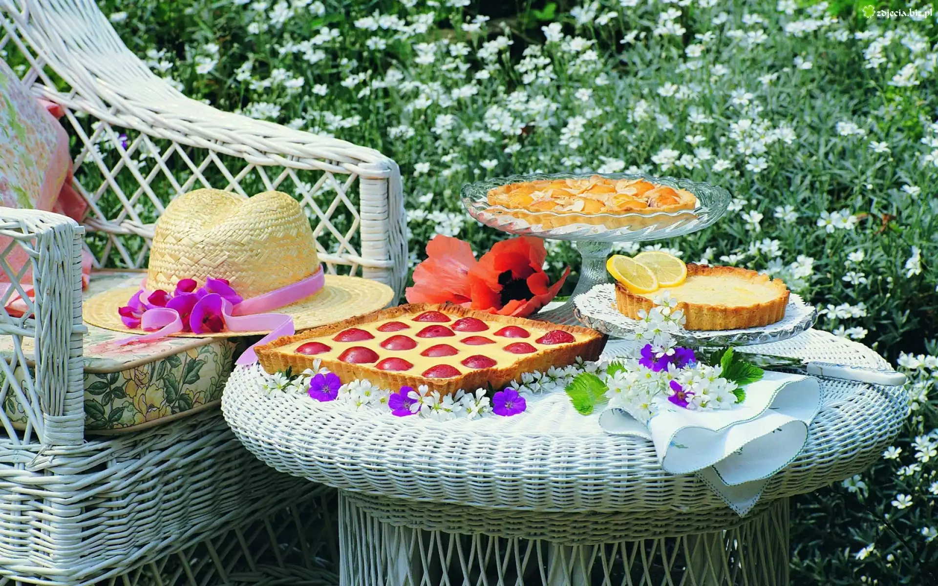 Zdjęcie Ogród, Wypoczynek, Fotel, Ciasto, Kapelusz