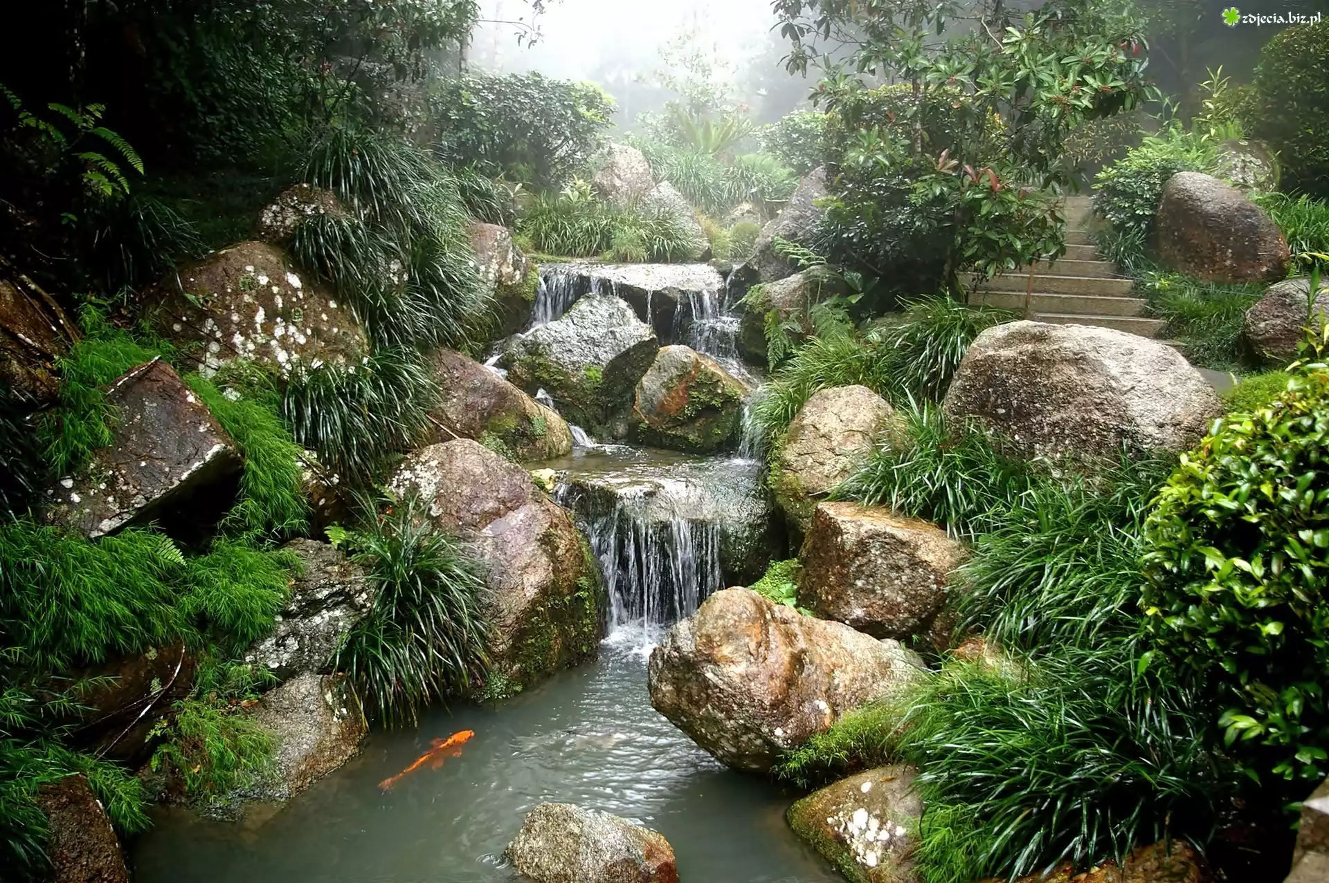 Zdjęcie Ogród, Zen, Kaskada, Sadzawka, Karp, Koi