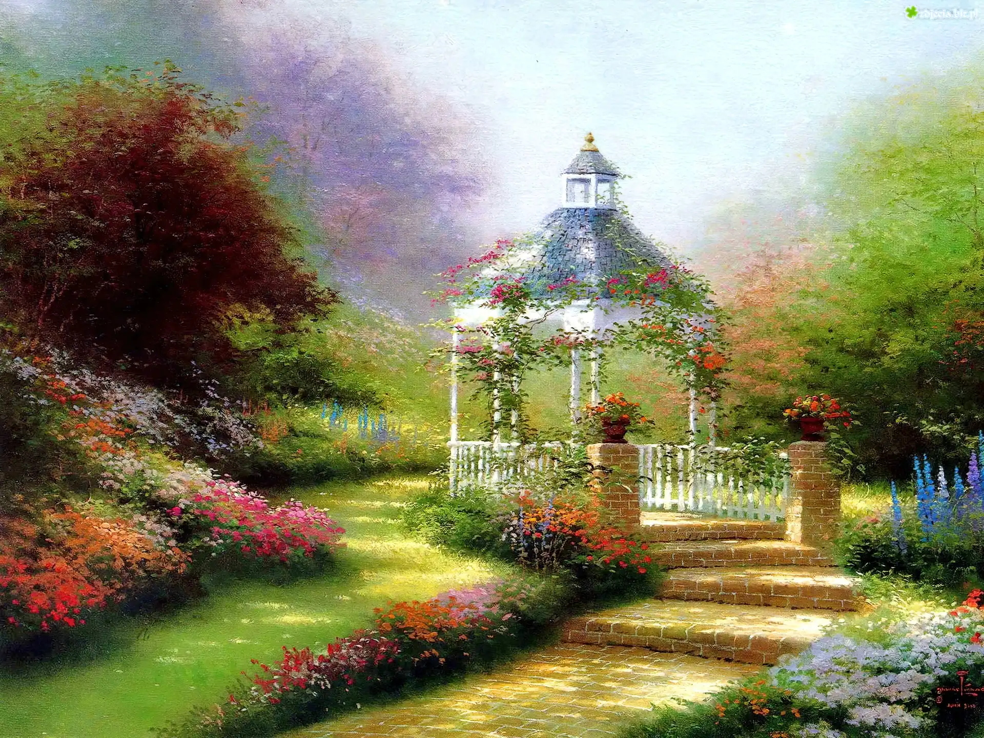 Zdjęcie Ogród, Altanka, Trawnik, Kwiaty, Alejka