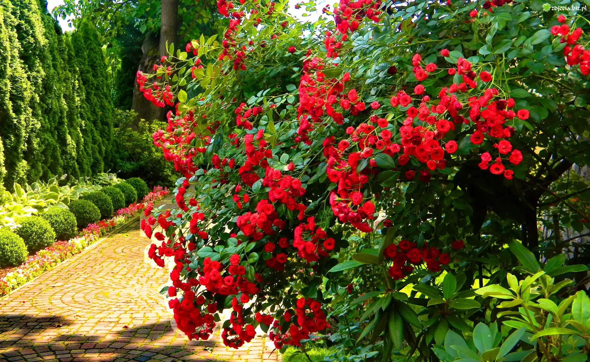 Zdjęcie Ogród, Alejka, Kwitnące, Drzewo