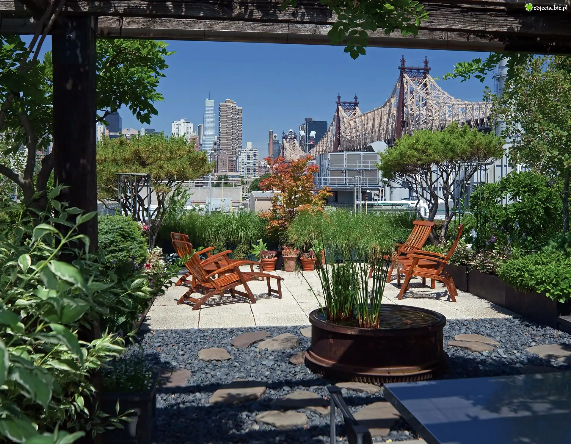 Zdjęcie Ogródek, Drapacze, Chmur, Most