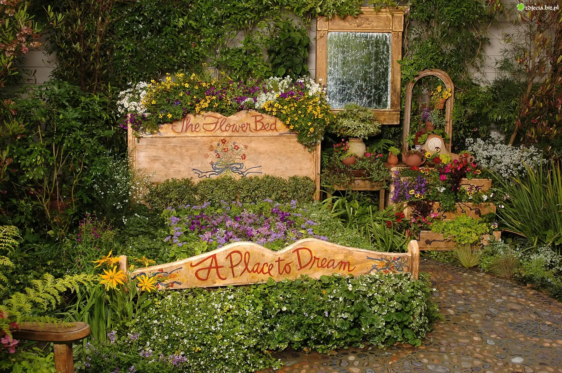 Zdjęcie Ogródek, Kwiaty, Meble, Wystrój