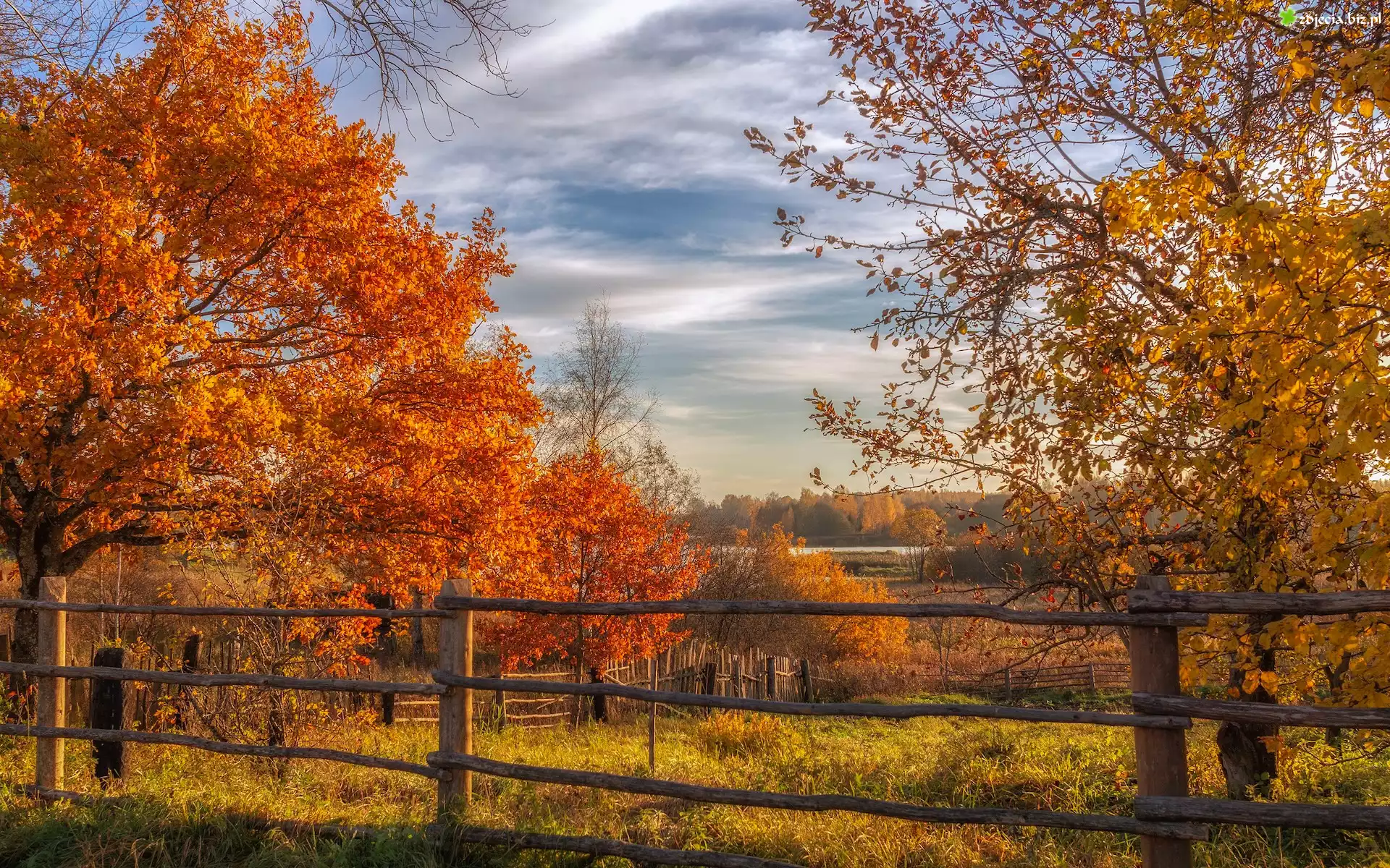 Zdjęcie Jesień, Pożółkłe, Drzewa, Ogrodzenie