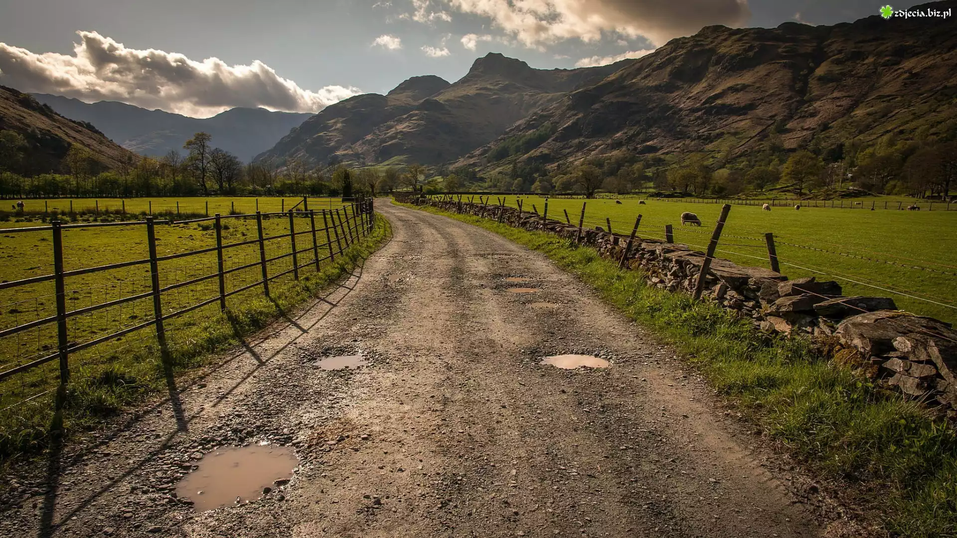 Zdjęcie Droga, Ogrodzenie, Pastwisko, Dolina, Góry