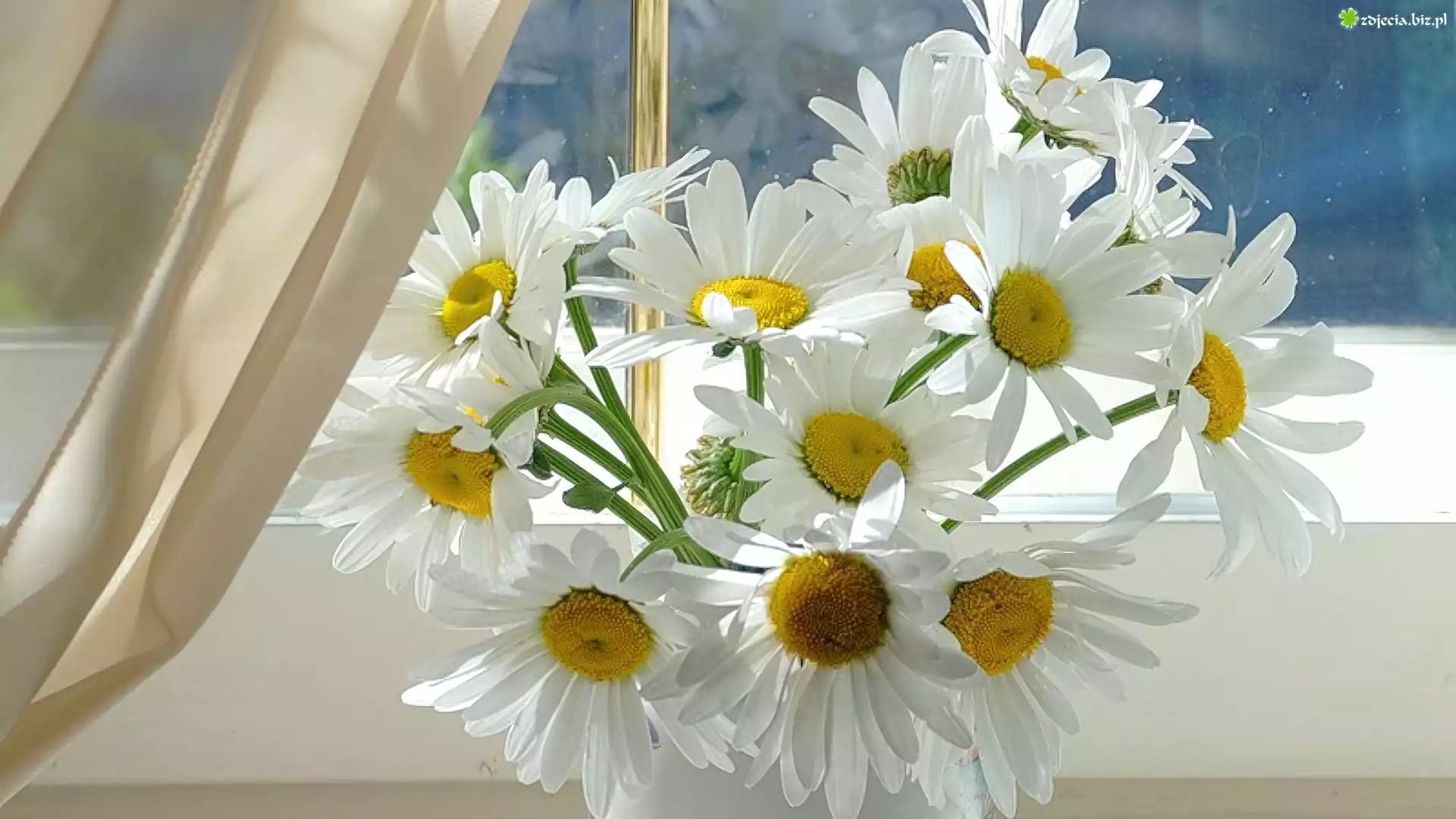 Zdjęcie Okno, Zasłonka, Białe, Margarytki
