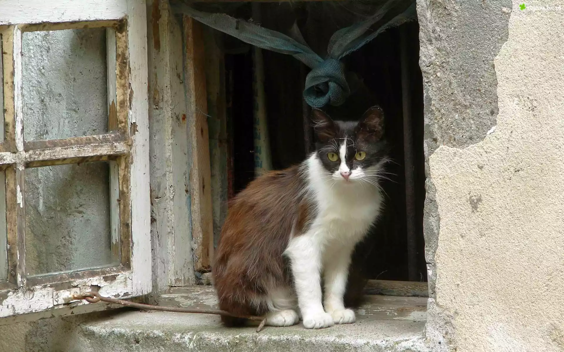 Zdjęcie, Łaciaty, Kot, Okno, Ściany