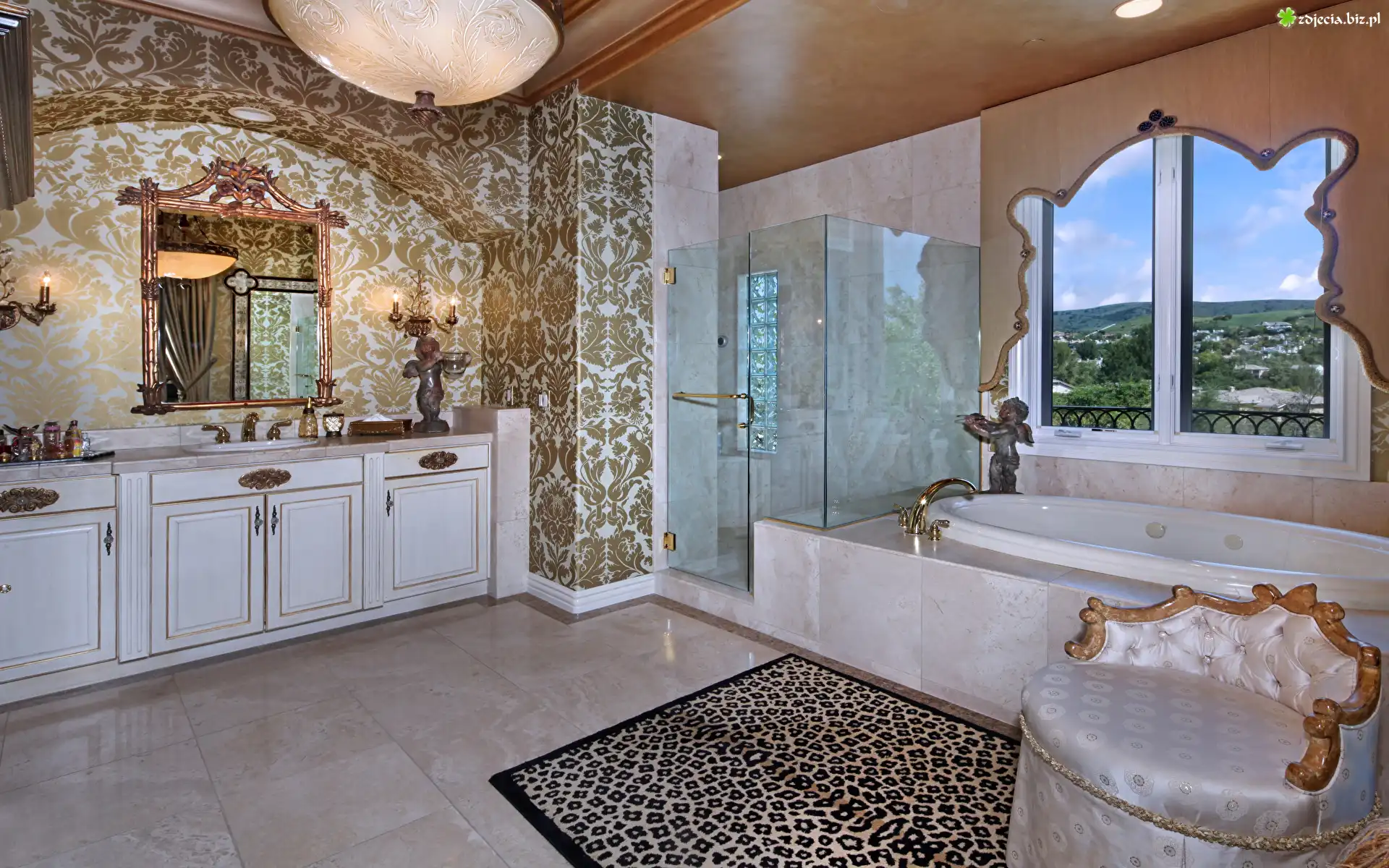 Zdjęcie Łazienka, Wanna, Prysznic, Okno, Krzesło