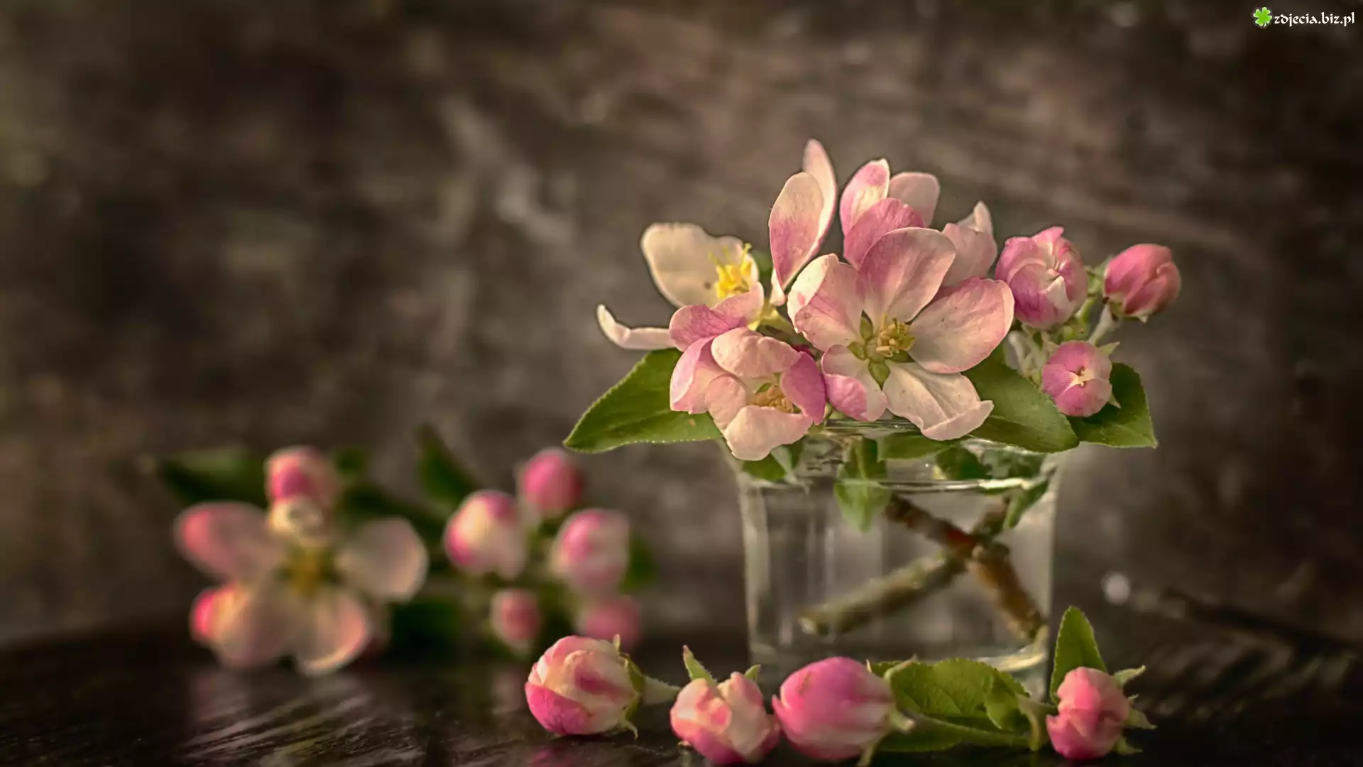 Zdjęcie Okwiecone, Gałązki, Drzewo owocowe, Jabłoń, Szklanka
