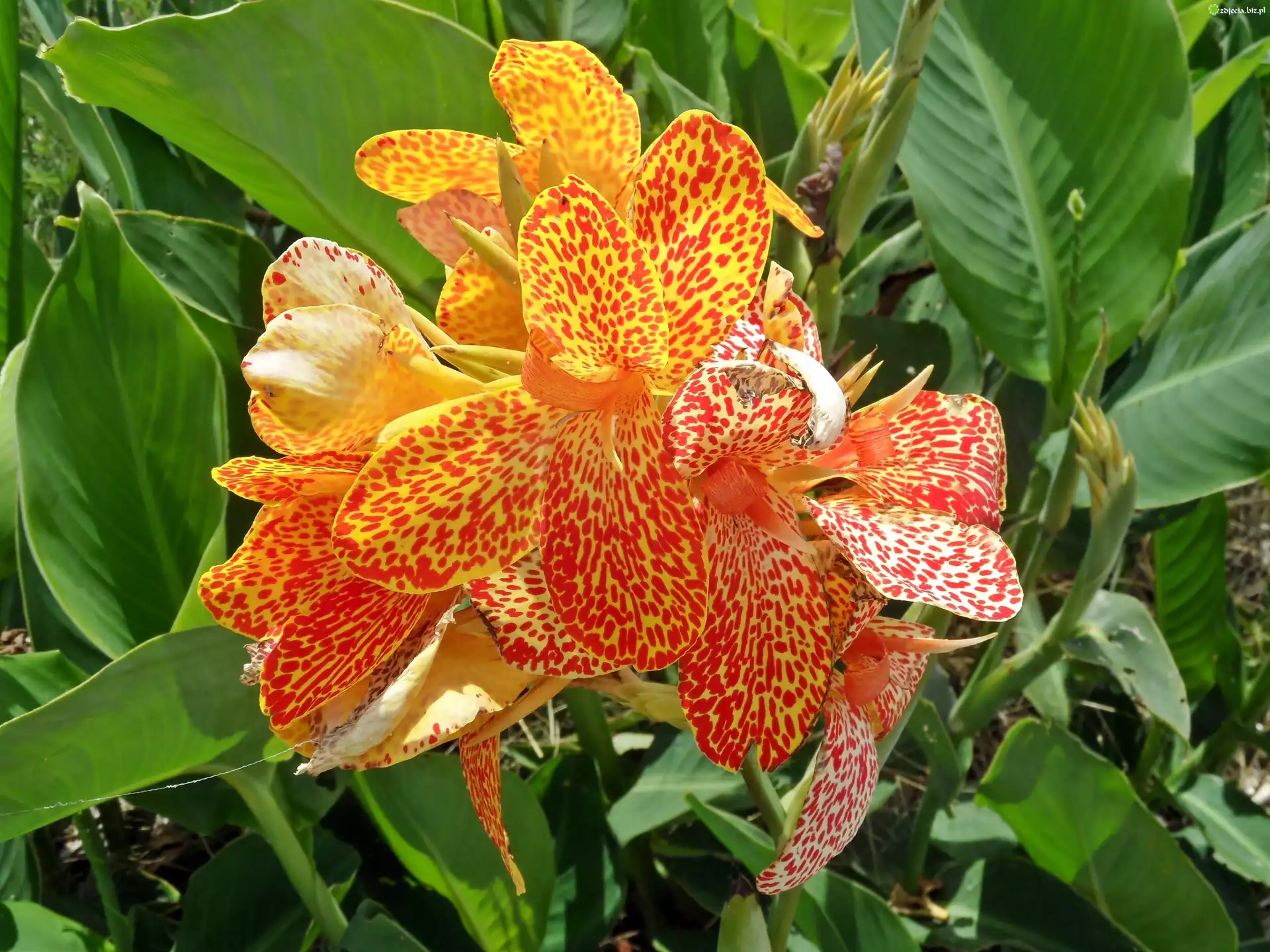 Kwiat, Paciorecznika, Złocistego Paciorecznik, Czerwony, Kwiatki, Niebieskie, Liście, Ogród, Lato Kanna, Żółta, Nakrapiana