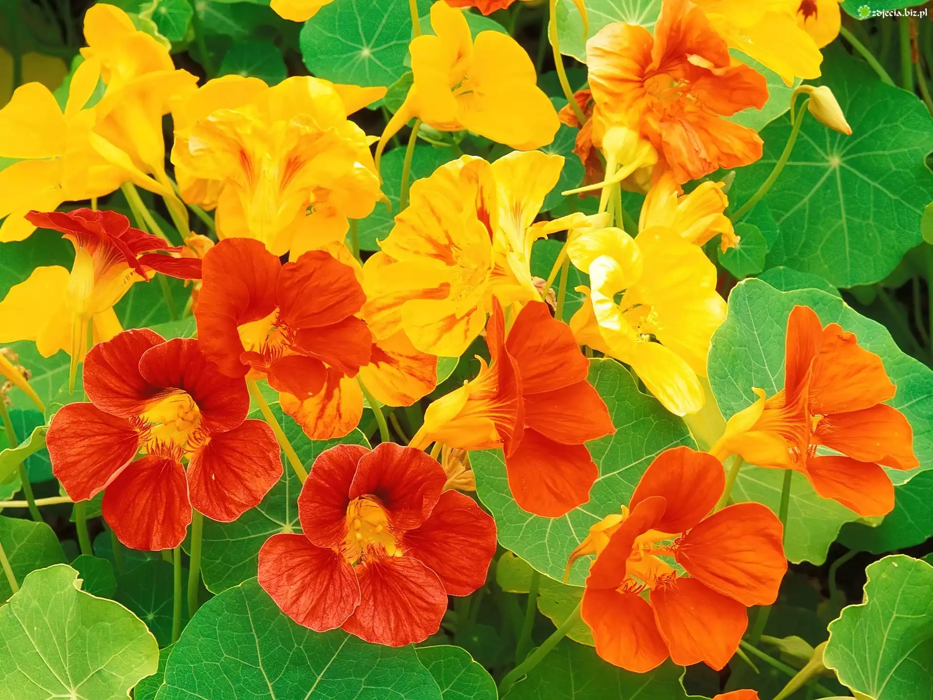 Zdjęcie Nasturcje, Żółte, Pomarańczowe