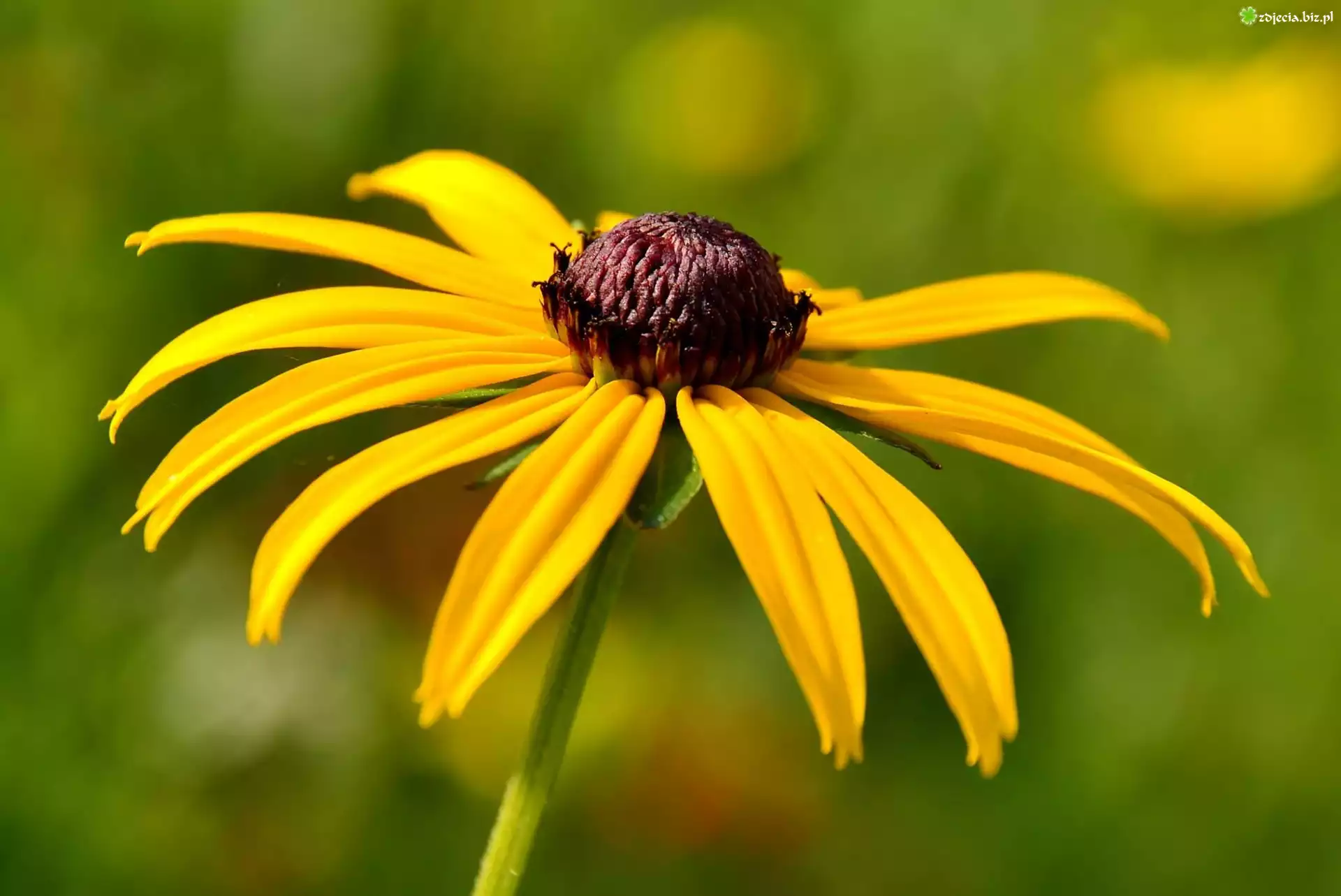 Żółty, Kwiat Goldsturm Kwitnące, Rudbekie Rudbekia błyskotliwa, Rudbeckia fulgida Rudbekia, Błyskotliwa Rudbekia, Błyskotliwa, Brązowo, Żółty, Kwiat, Makro