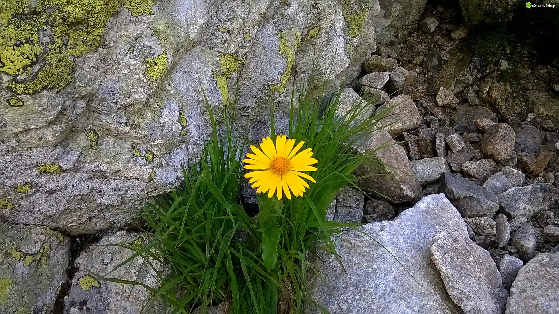 Zdjęcie Żółty, Kwiat, Arnika, Górska, Kamienie, Skały