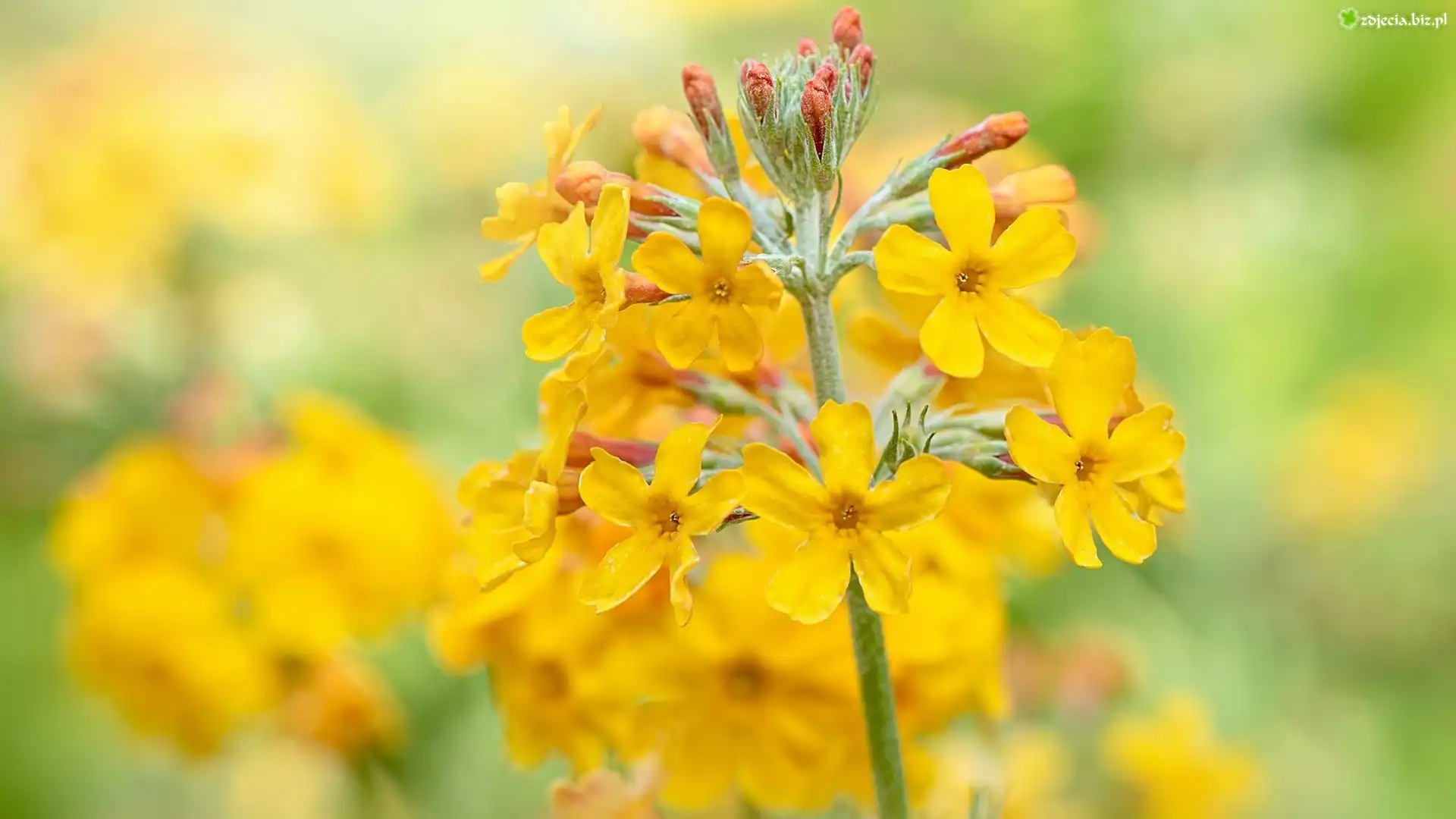 Zdjęcie Kwiat, Żółty, Pierwiosnek, Prymula, Primula beesiana, Rozmyte tło