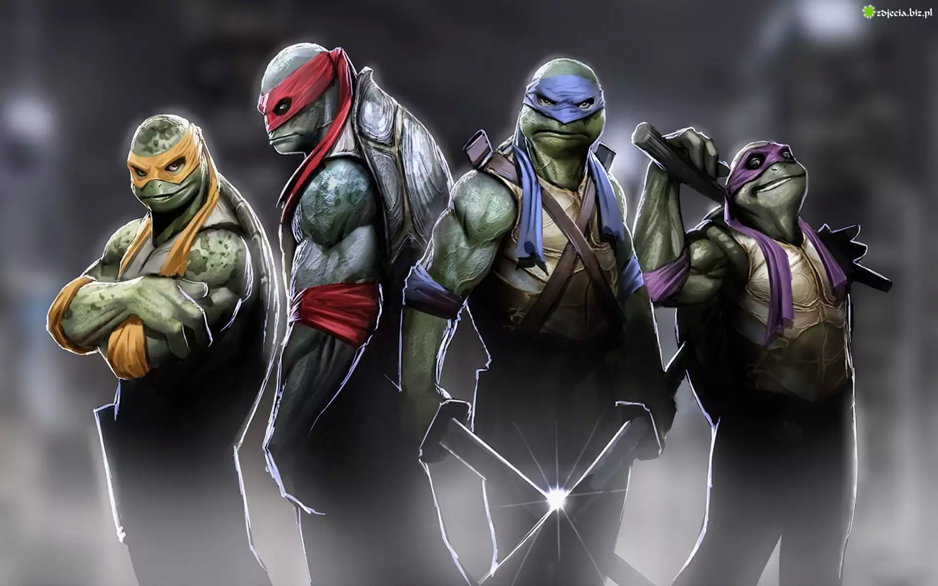 Wojownicze Żółwie Ninja, dach, księżyc, miecz, chmury Wojownicze Żółwie Ninja