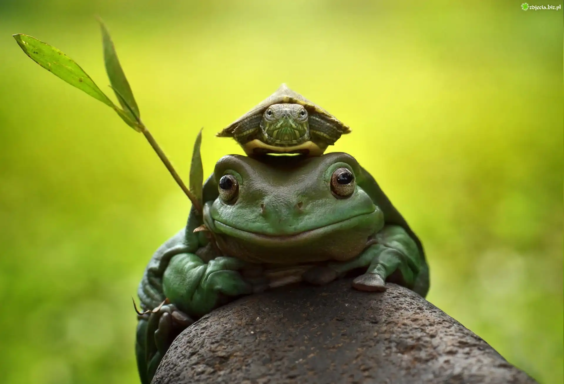 Zdjęcie Żabka, Żółwik, Kamień