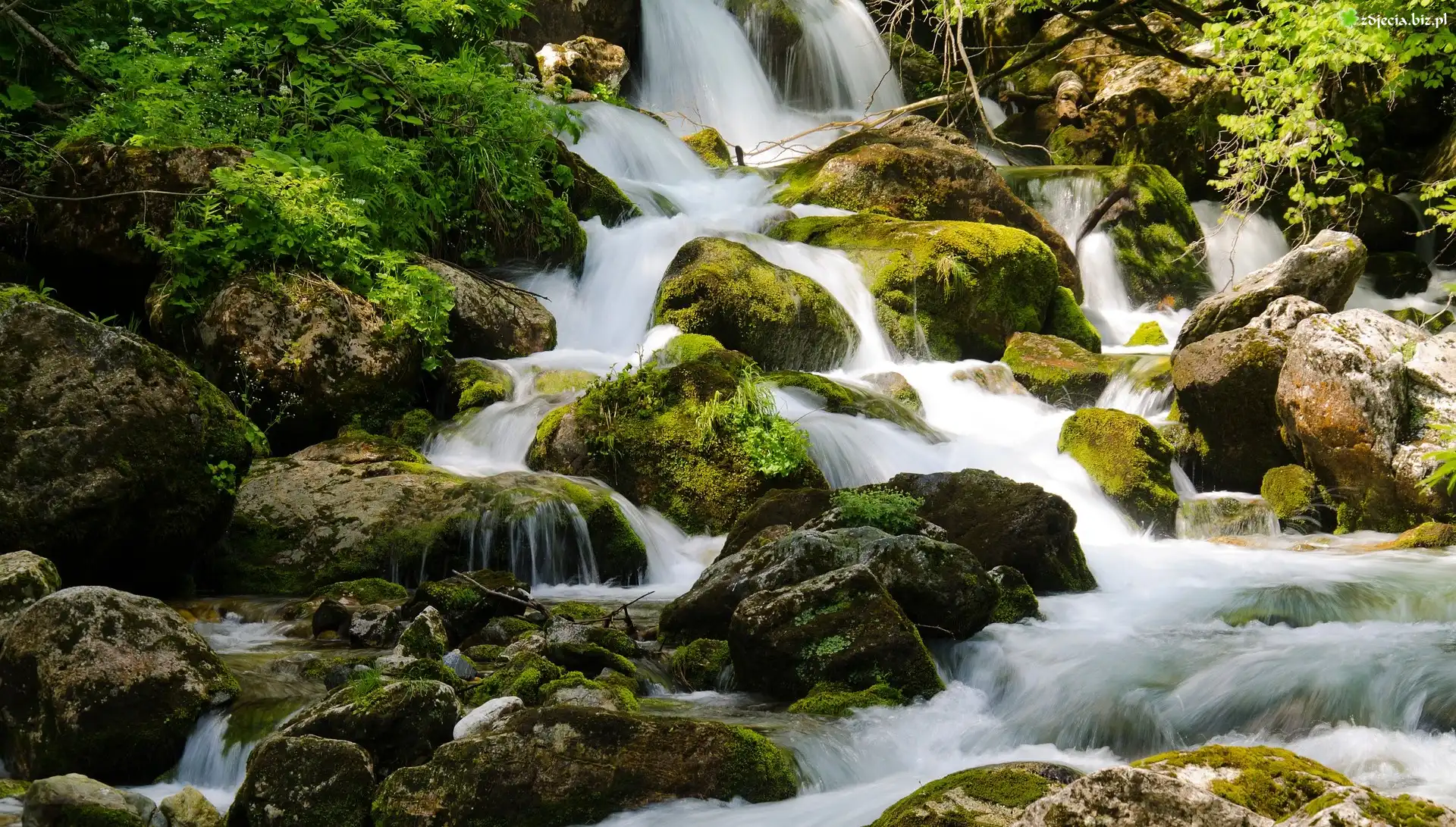 Zdjęcie Omszałe, Kamienie, Wodospad, Rośliny