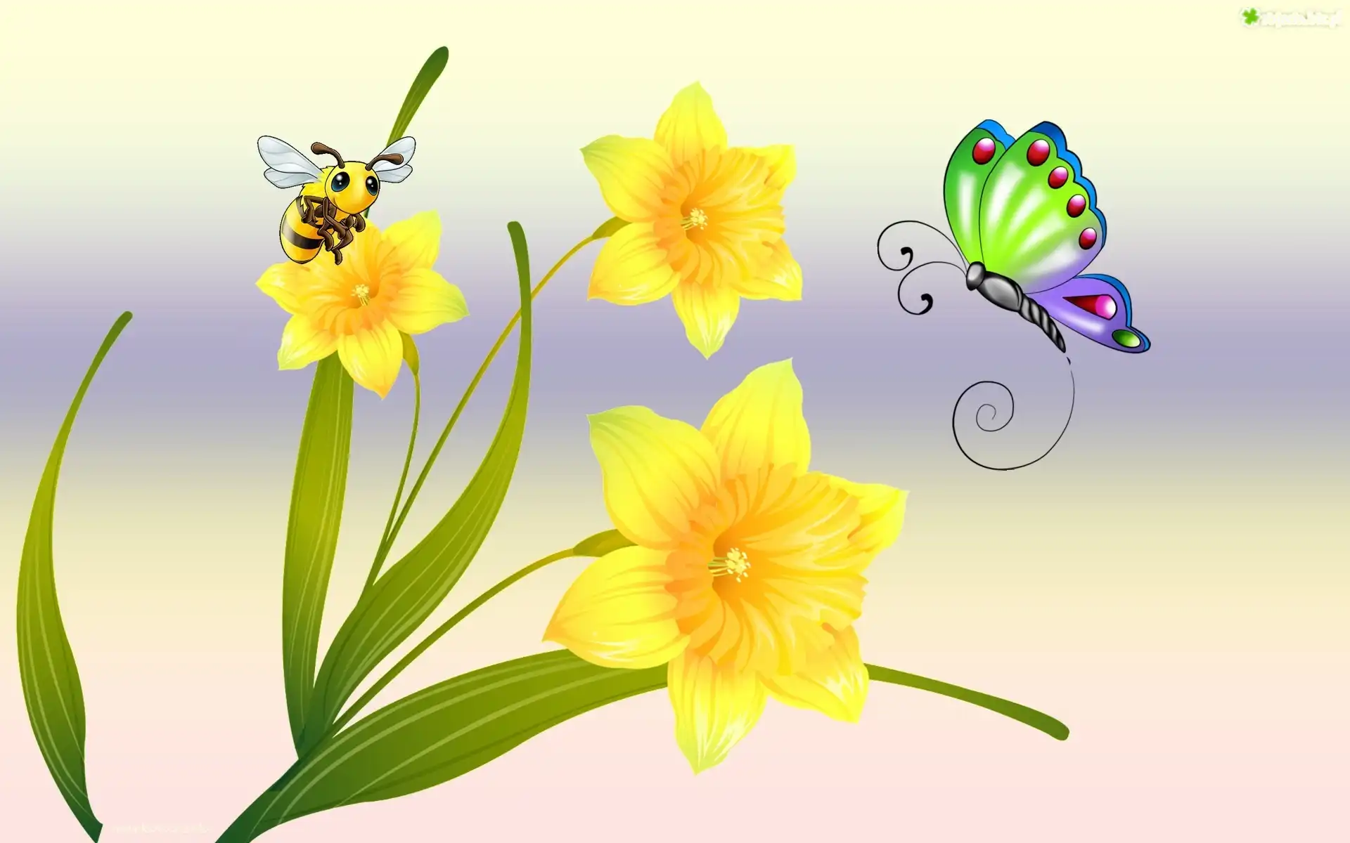 Zdjęcie Kwiaty, Żonkile, Motyle