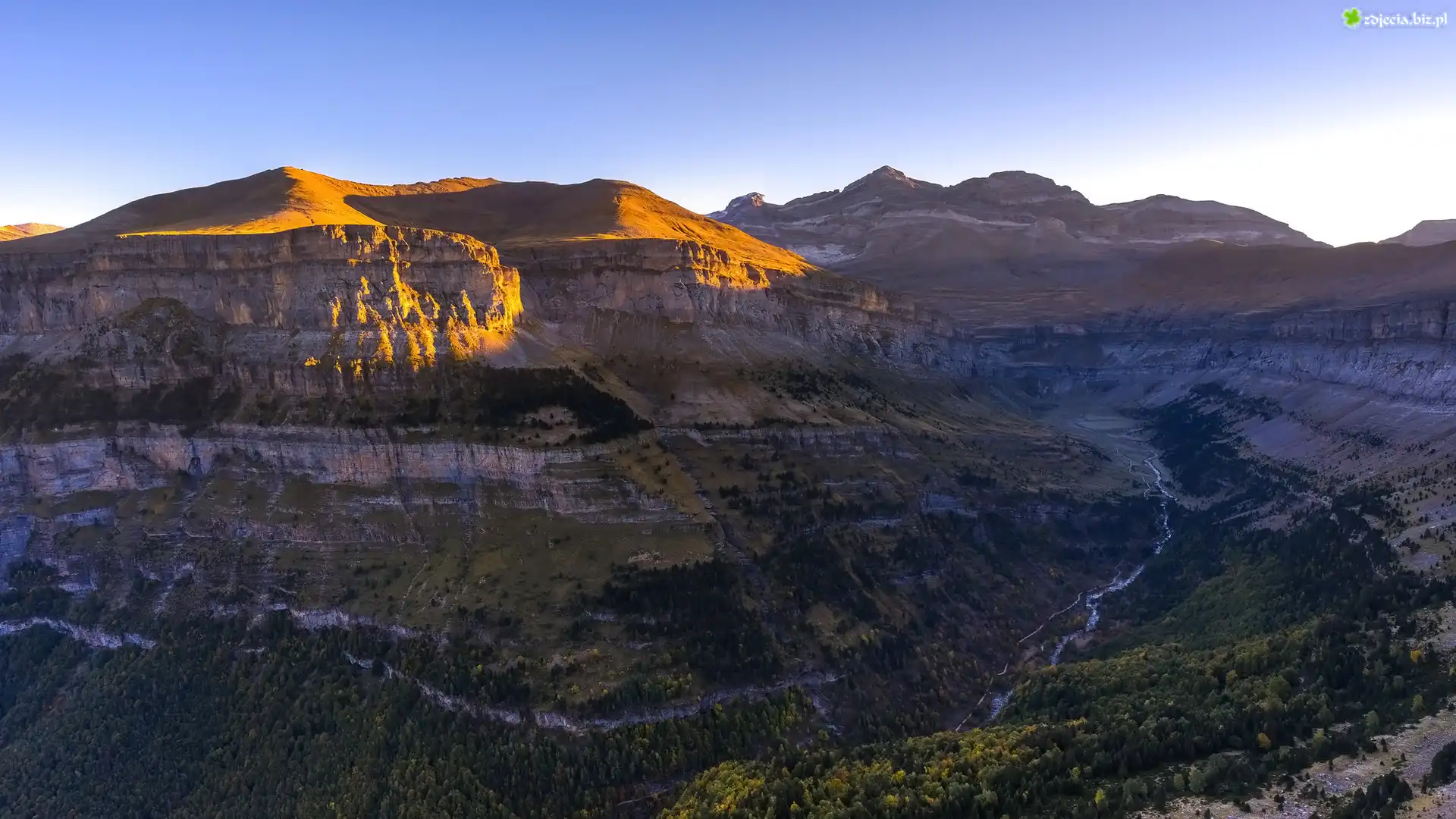 Zdjęcie Góry, Pireneje, Drzewa, Kanion, Park Narodowy Ordesa y Monte Perdido, Hiszpania