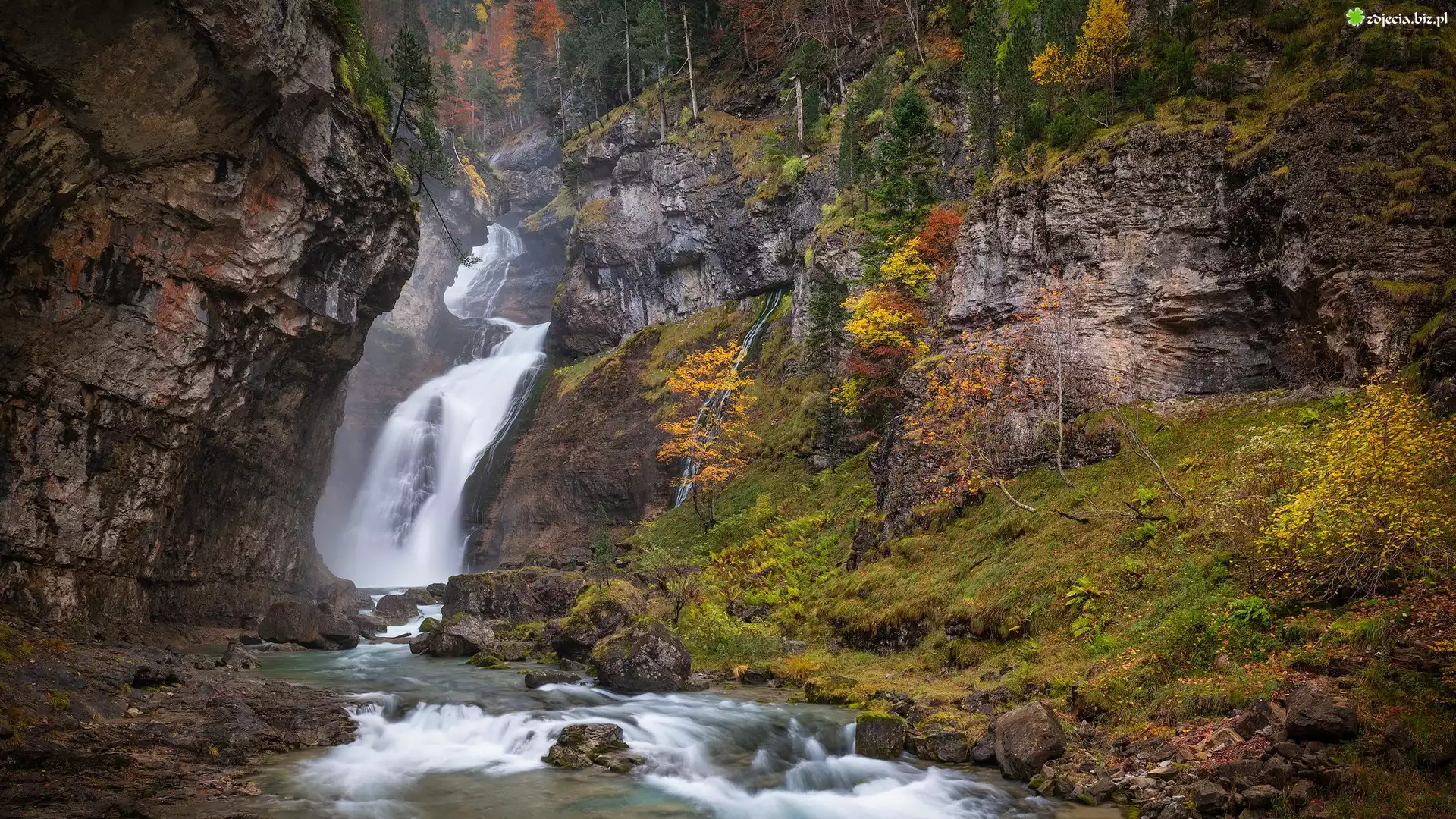 Zdjęcie Skały, Wodospad, Rzeka, Rośliny, Park Narodowy Ordesa y Monte Perdido, Hiszpania